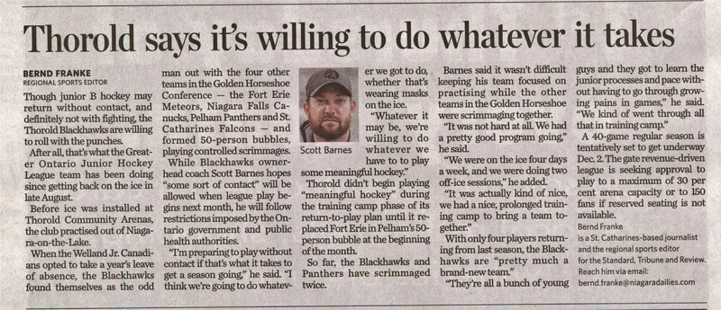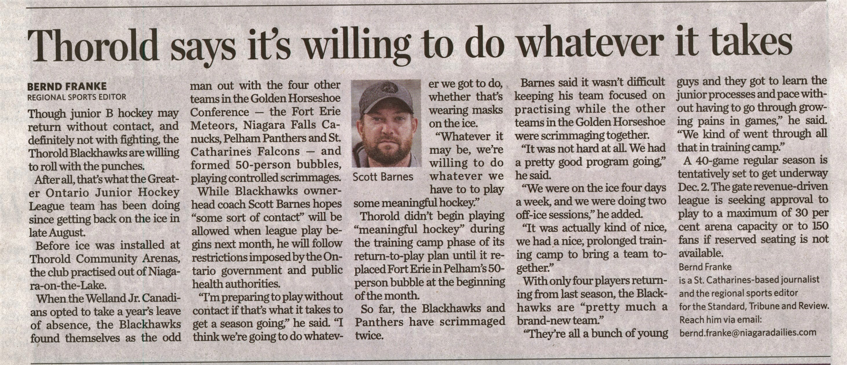 - Barnes, Scott / Thorold Blackhawks / Junior B Hockey League / COVID-19 pandemic / no contact
