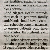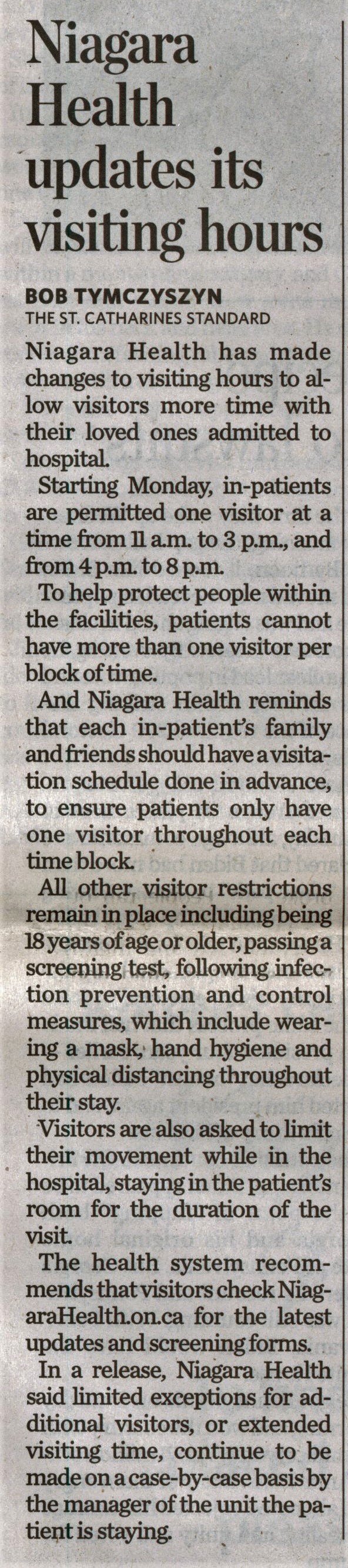 - Niagara Health / visiting hours / COVID-19 pandemic / safety protocols