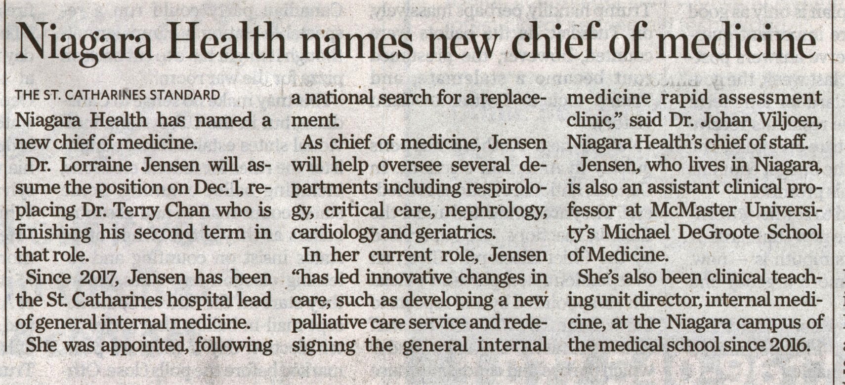 - Niagara Health / Jensen, Lorraine / chief of medicine