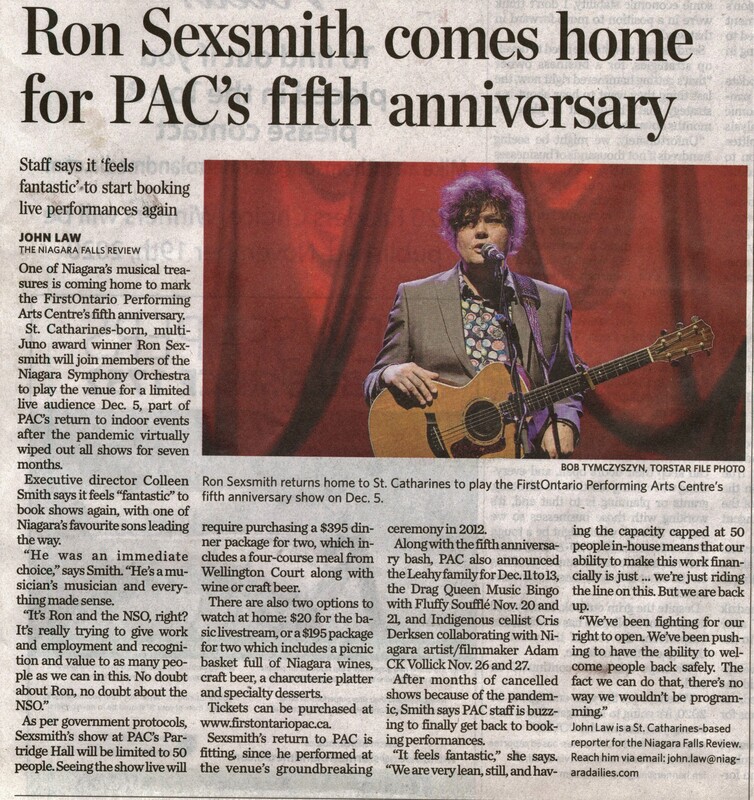 - Ron Sexsmith comes home for PAC's fifth anniversary : Staff says it 'feels fantastic' to start booking live performances again