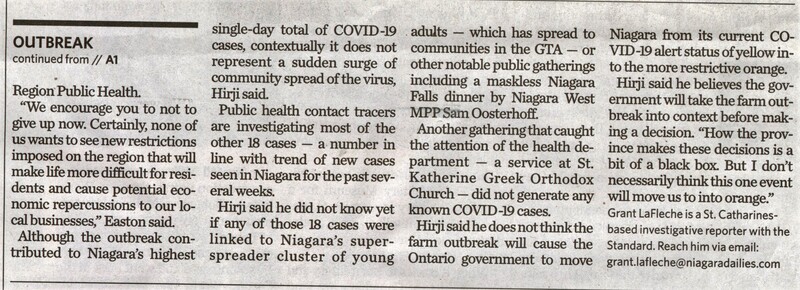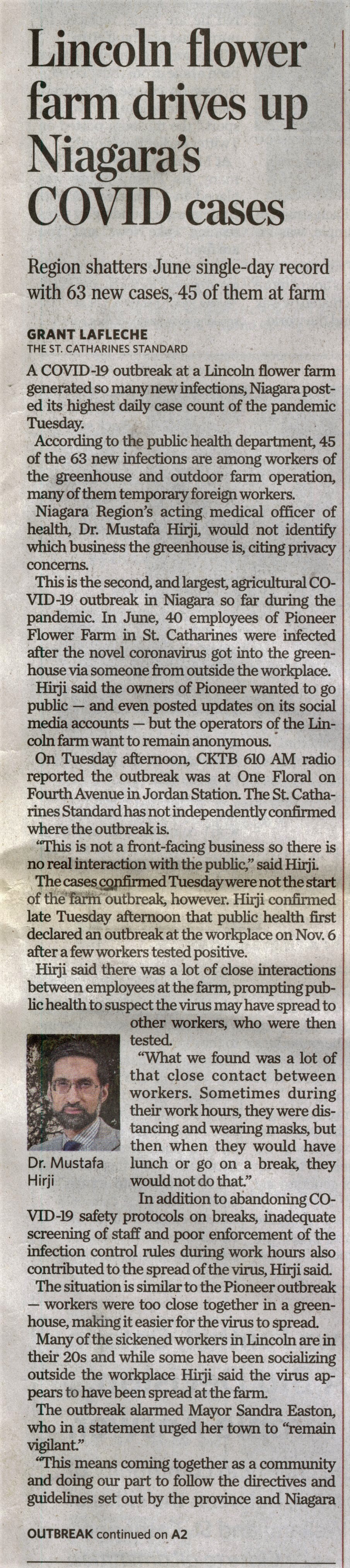 - Lincoln flower farm drives up Niagara's COVID cases : Region shatters June single-day record with 63 new cases, 45 of them at farm