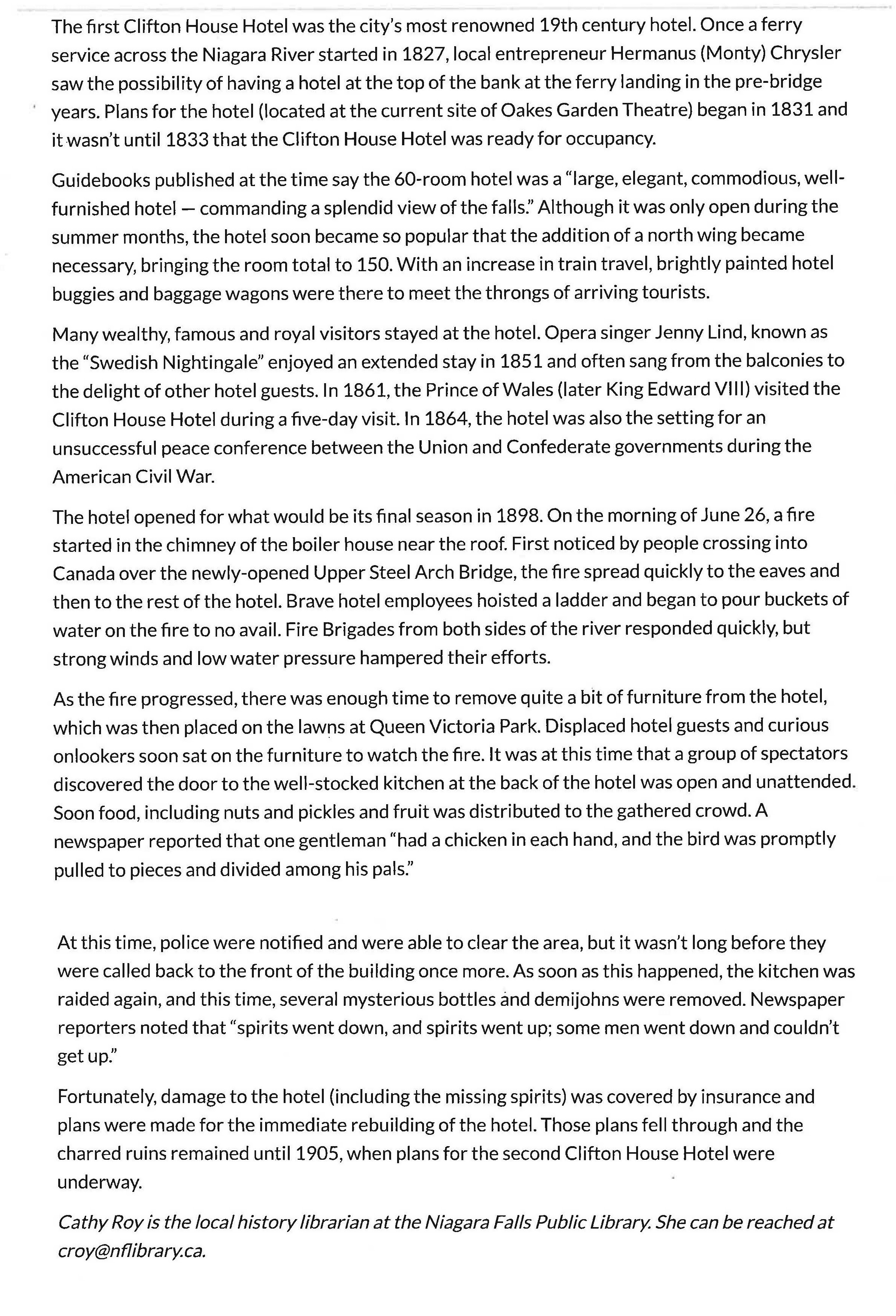 - The rise and fall of the first Clifton House Hotel in Niagara Falls : Bustling hotel drew tourists to Falls