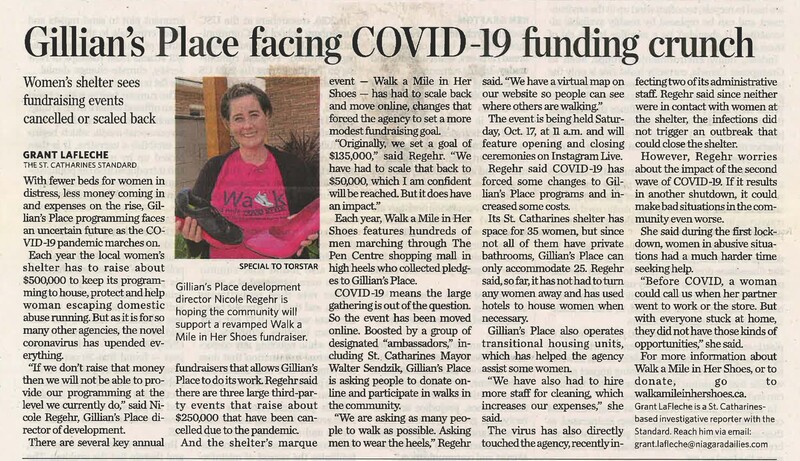 - Gillian's Place facing COVID-19 funding crunch : women's shelter sees fundraising events cancelled or scaled back
