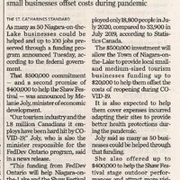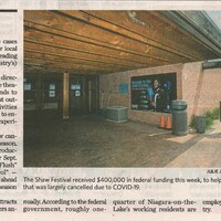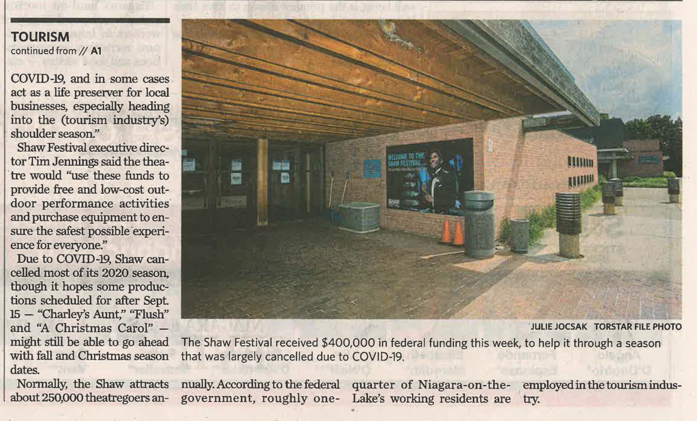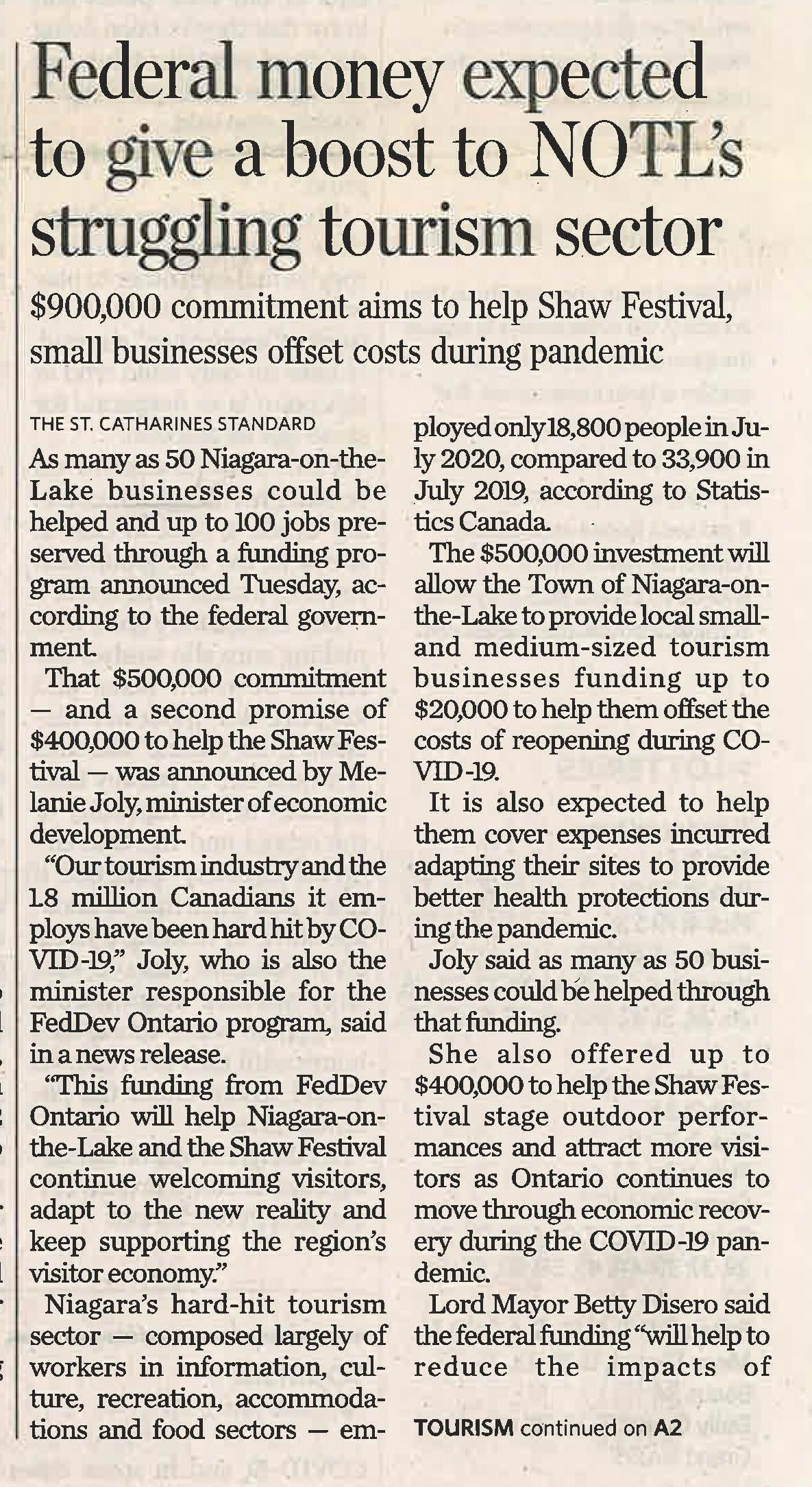 - Federal money expected to give a boost to NOTL's struggling tourism sector : $900,000 commitment aims to help Shaw Festival, small businesses offset costs during pandemic