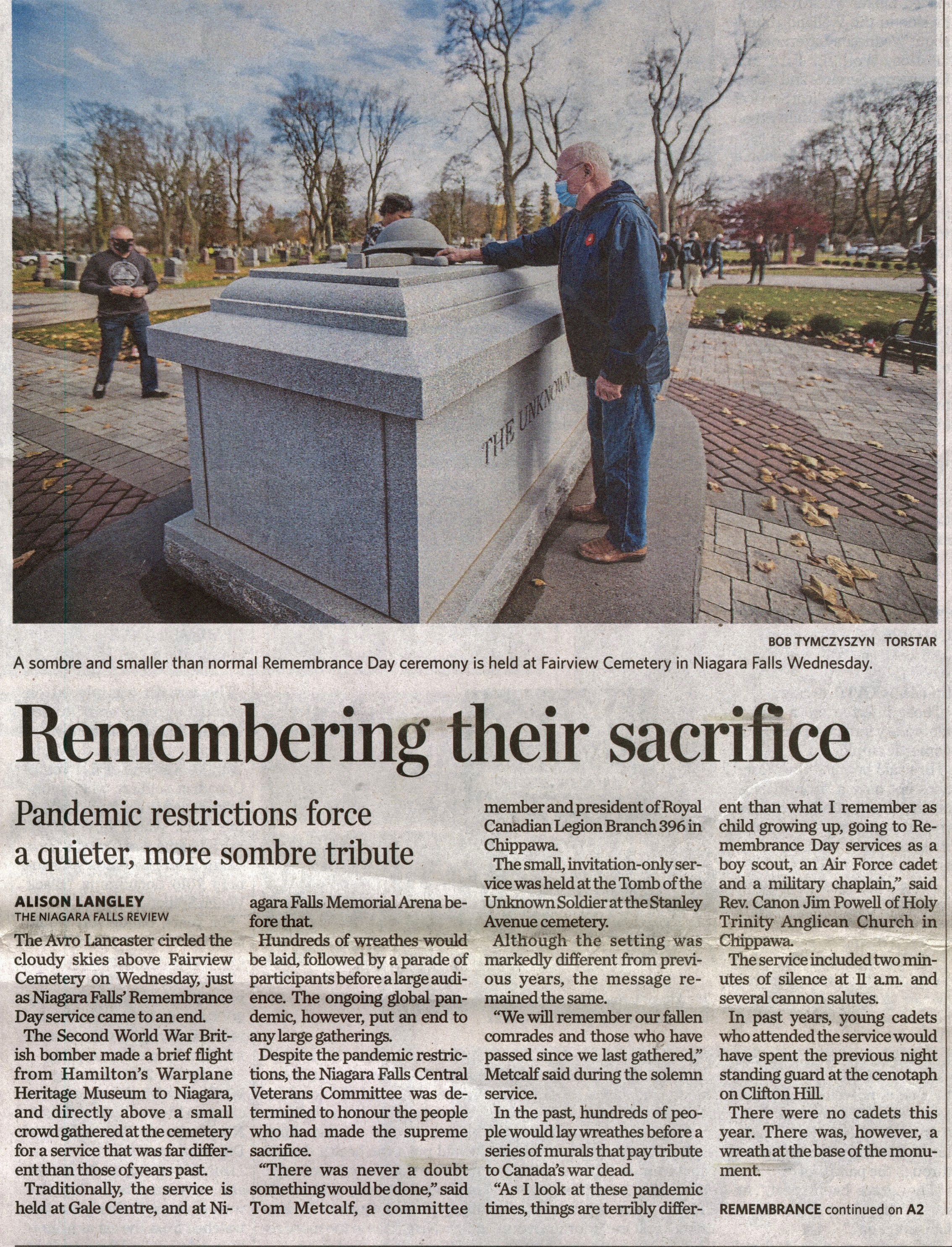 - Fairview Cemetery / Remembrance Day / COVID-19 pandemic / Niagara Falls Central Veterans Committee / Metcalf, Tom / Powell, Jim (Rev. Canon)