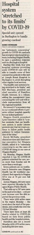 - Hospital system 'stretched to its limits' by COVID_19: Special unit opened in Burlington to handle growing caseload