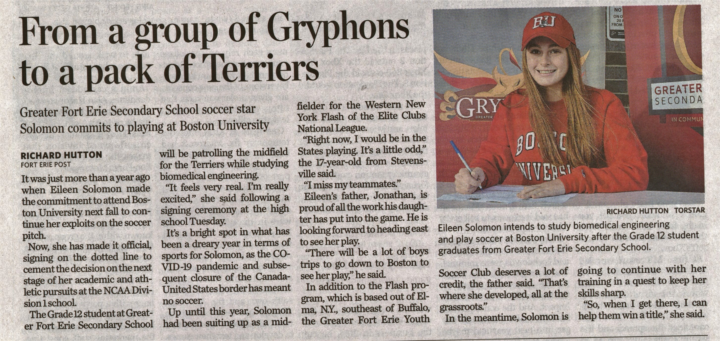 - From a group of Gryphons to a pack of Terriers : Greater Fort Erie Secondary School star Solomon committs to playing at Boston University