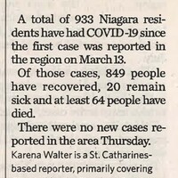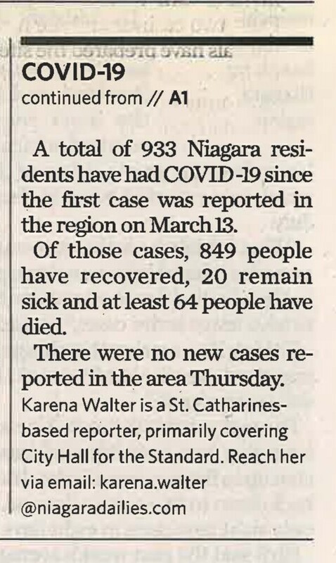 Active COVID-19 cases in Niagara at lowest since March : Numbers spiked to a high of 246 in April before starting to drop as trio pf major outbreaks got under control