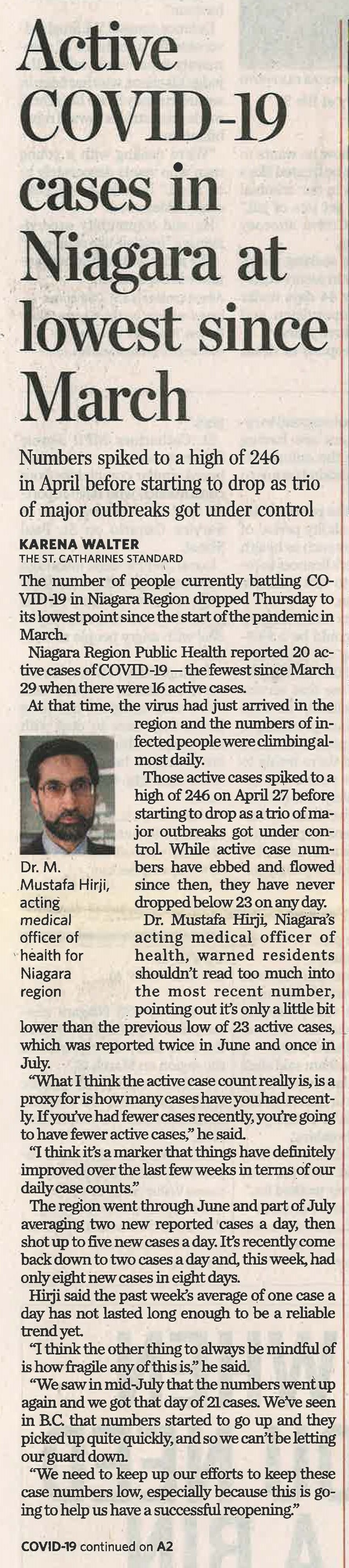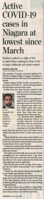 - COVID-19 pandemic / Niagara region / Hirji, Mustafa Dr. / public health