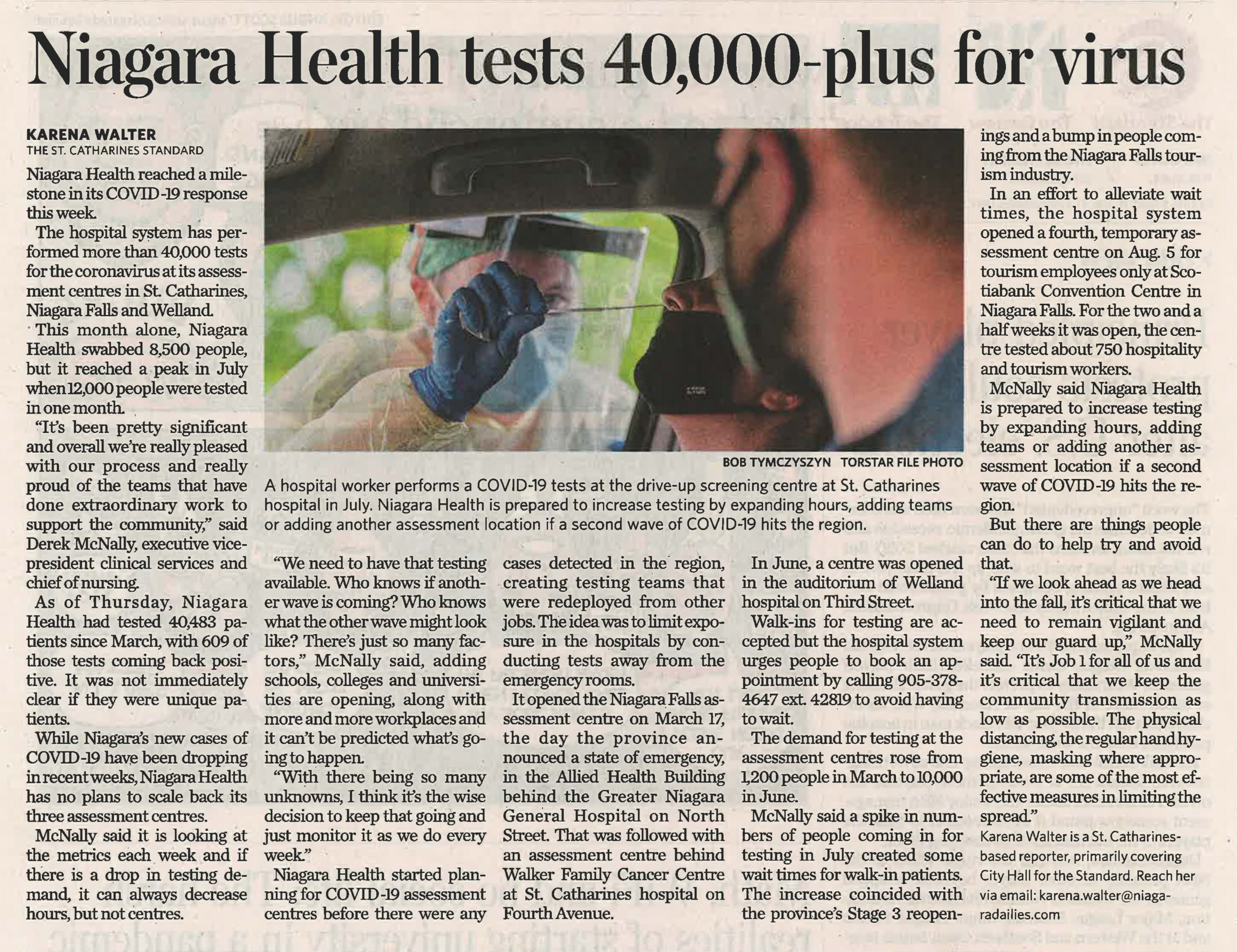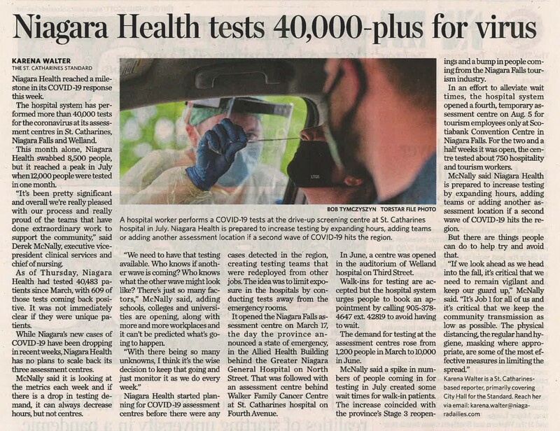 - COVID-19 pandemic / Niagara Health / McNally, Derek / assessment centres