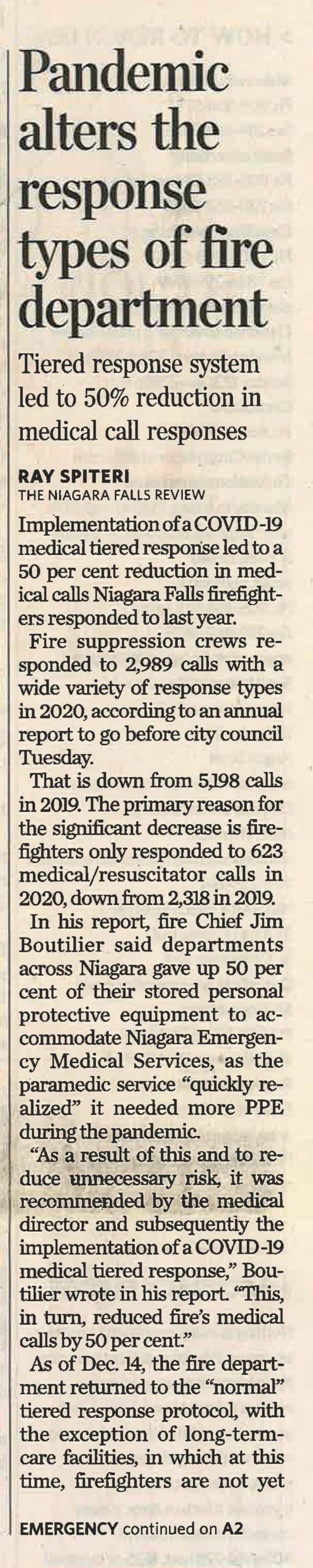 - Pandemic alters the response types of fire department : Tiered response system led to 50% reduction in medical call responses