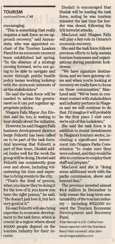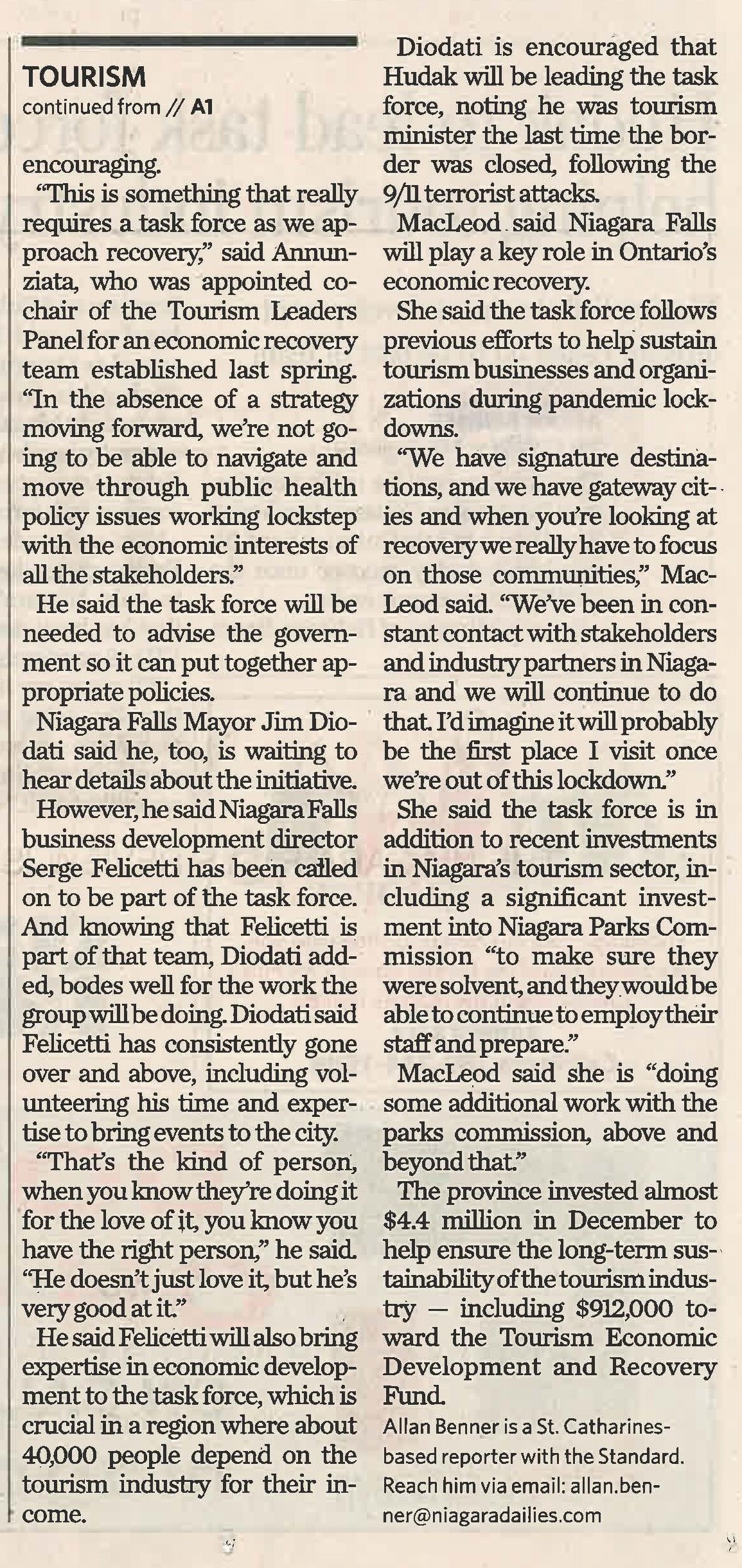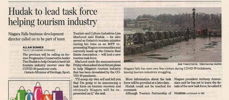 - Hudak to lead task force helping tourism industry : Niagara Falls business development director called on to be part of team