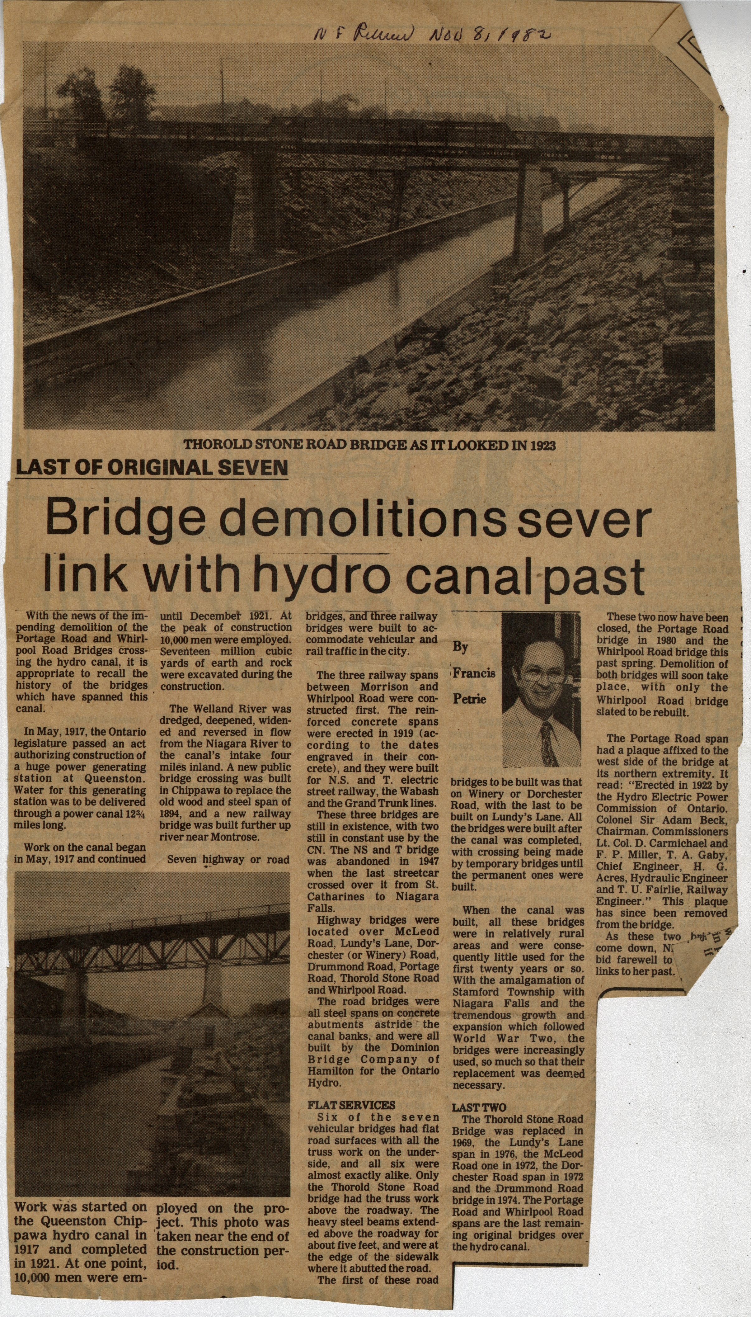 - Last of Original Seven : Bridge demolitions sever link with hydro canal past