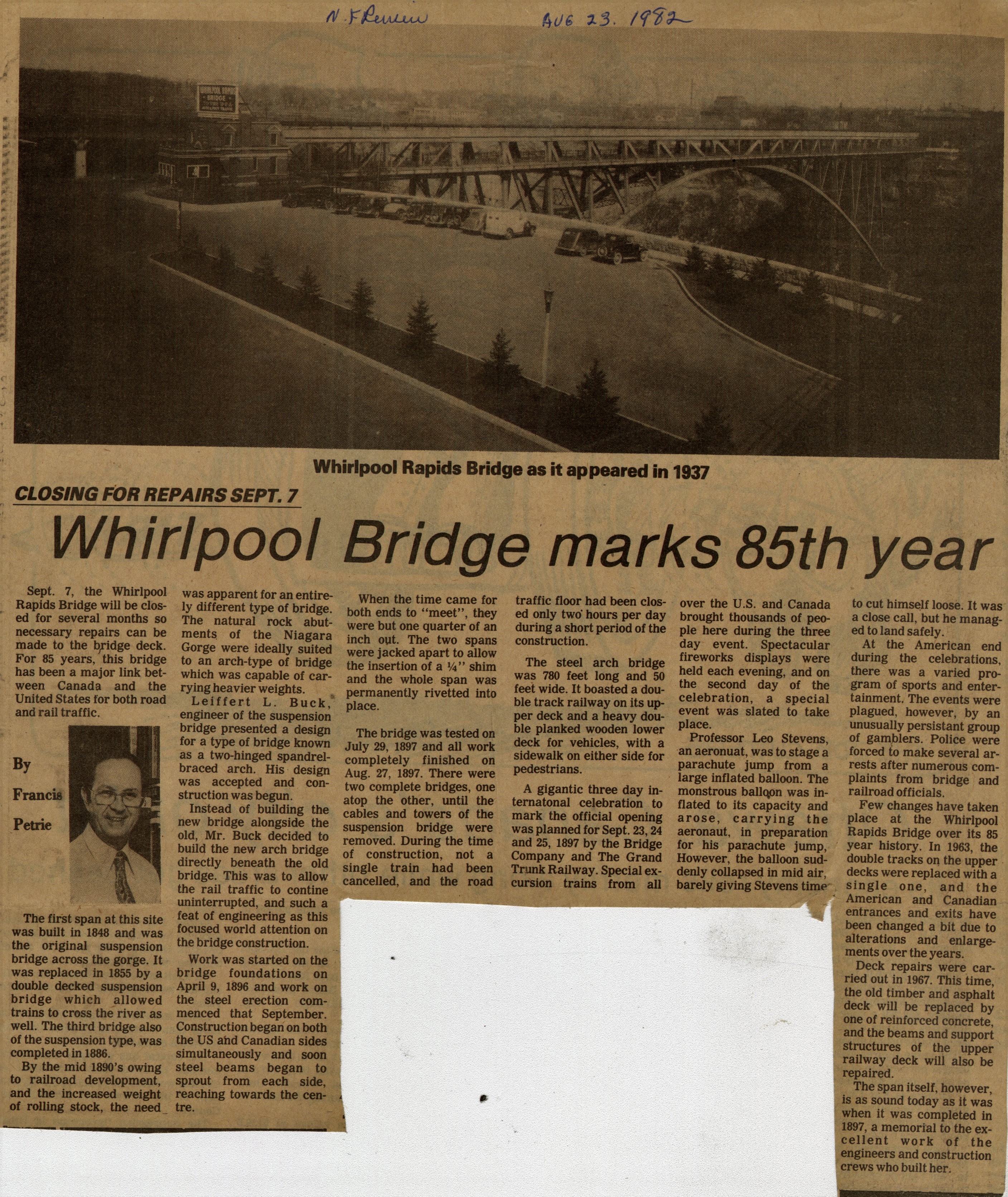 - Closing for Repairs Sept. 7 : Whirlpool Bridge marks 85th year