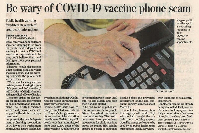 - Be wary of COVID-19 vaccine phone scam : Public health warning fraudsters in search of credit card information