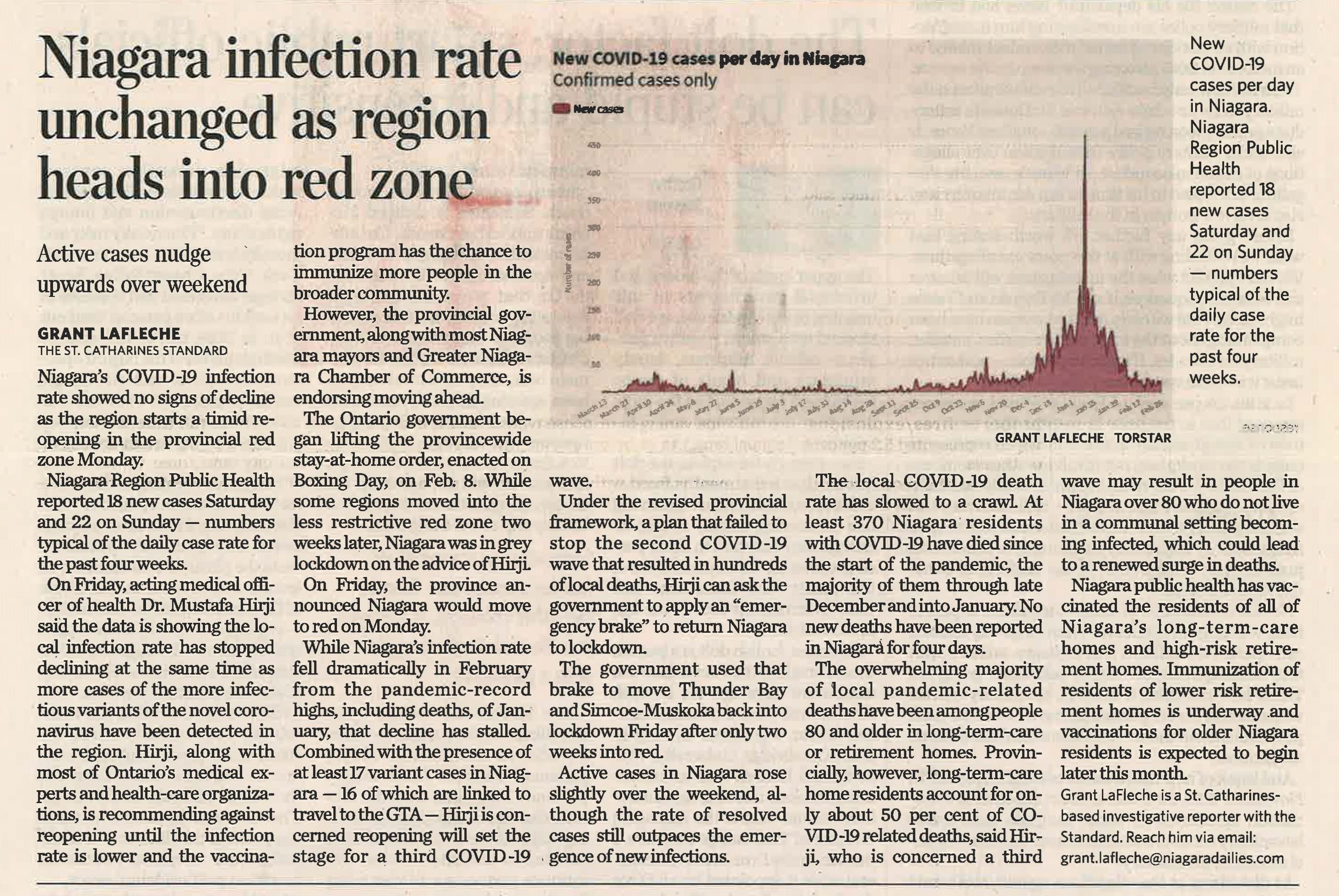 - Niagara infection rate unchanged as region heads into red zone : Active cases nudge upwards over weekend