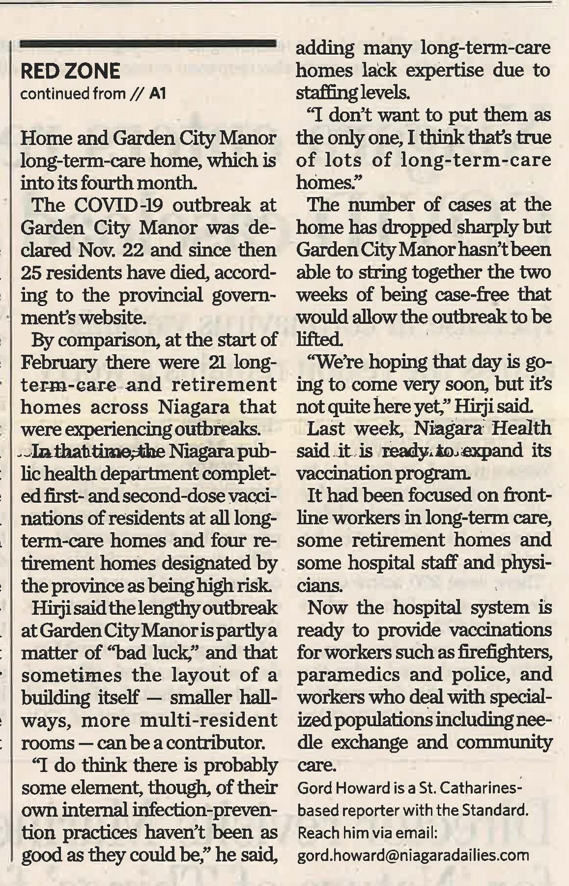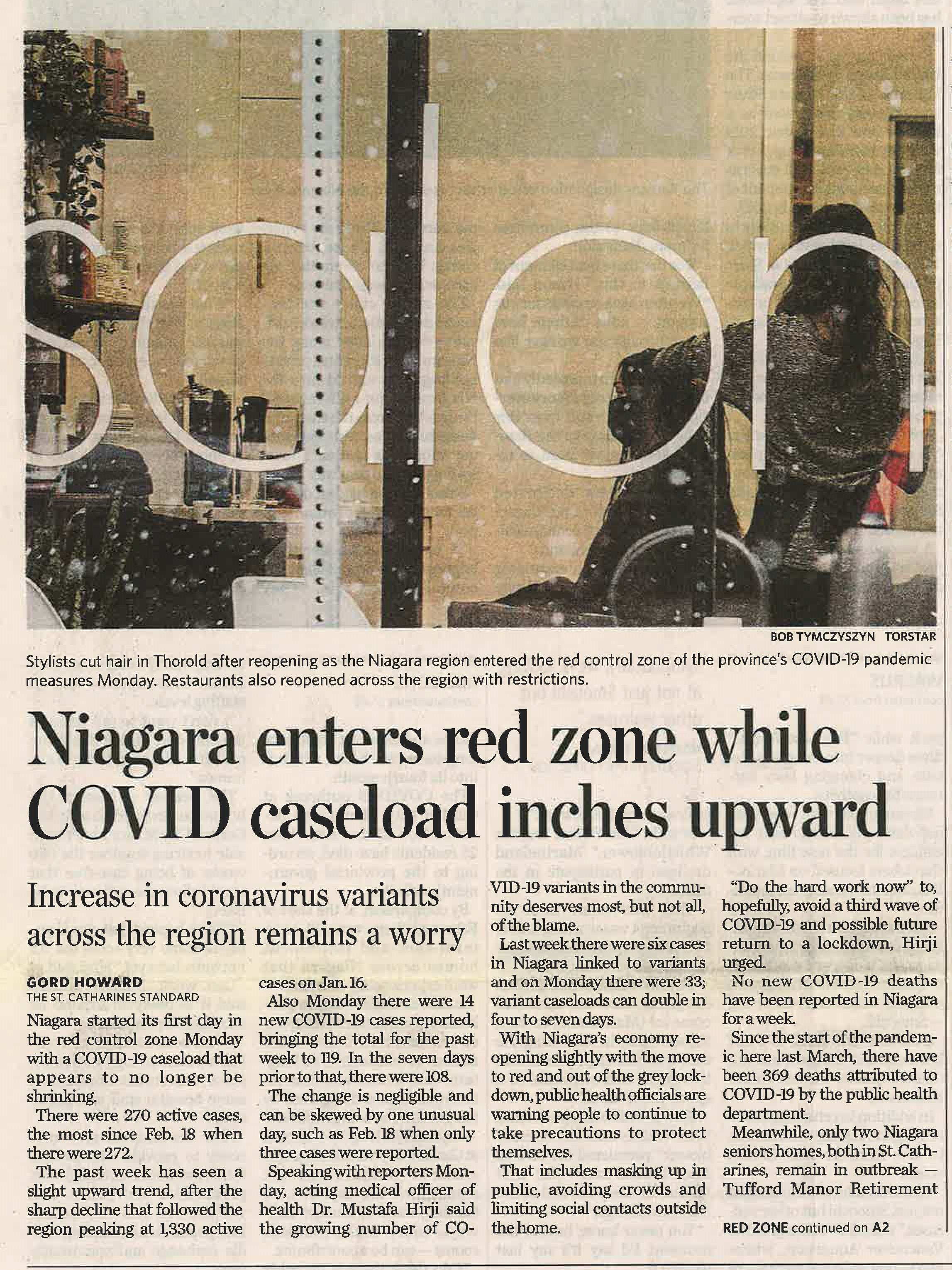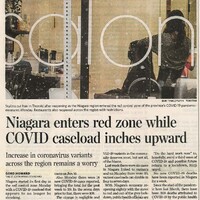 - Niagara enters red zone while COVID caseload inches upward : Increase in coronavirus variants across the region remains a worry