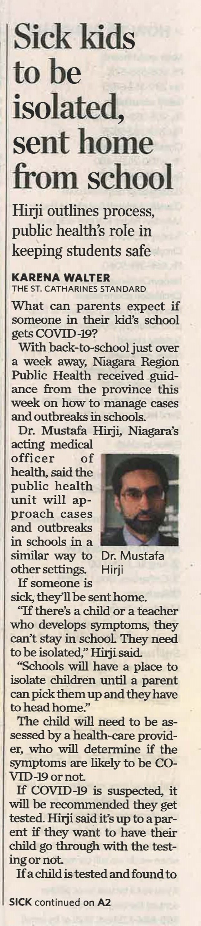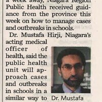 - Hirji, Mustafa Dr. / COVID-19 pandemic / Niagara Region Public Health / students