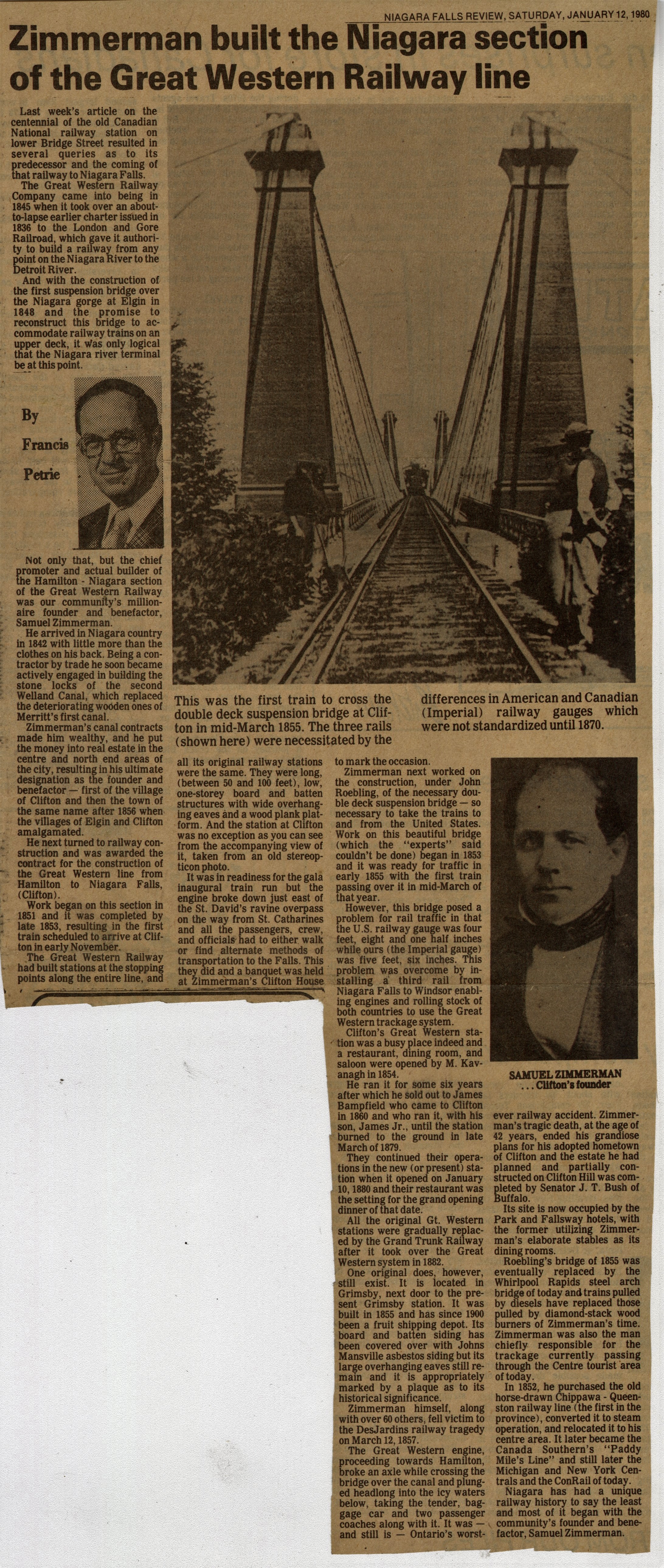 - Zimmerman built the Niagara section of the Great Western Railway line