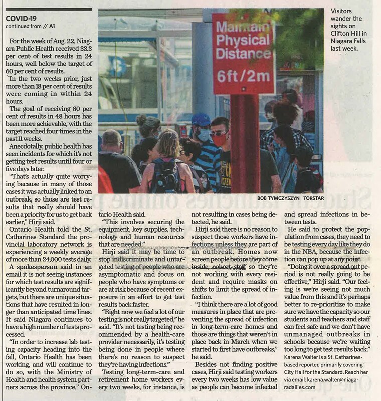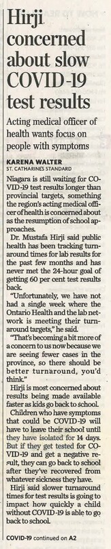 - Hirji concerned about slow COVID-19 test results : Acting medical officer of health wants focus on people with symptoms