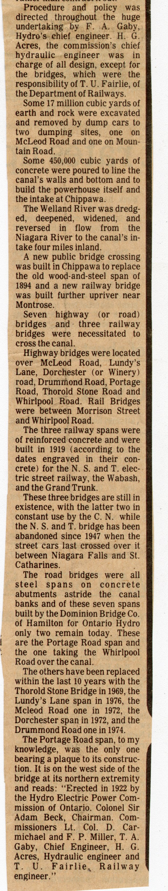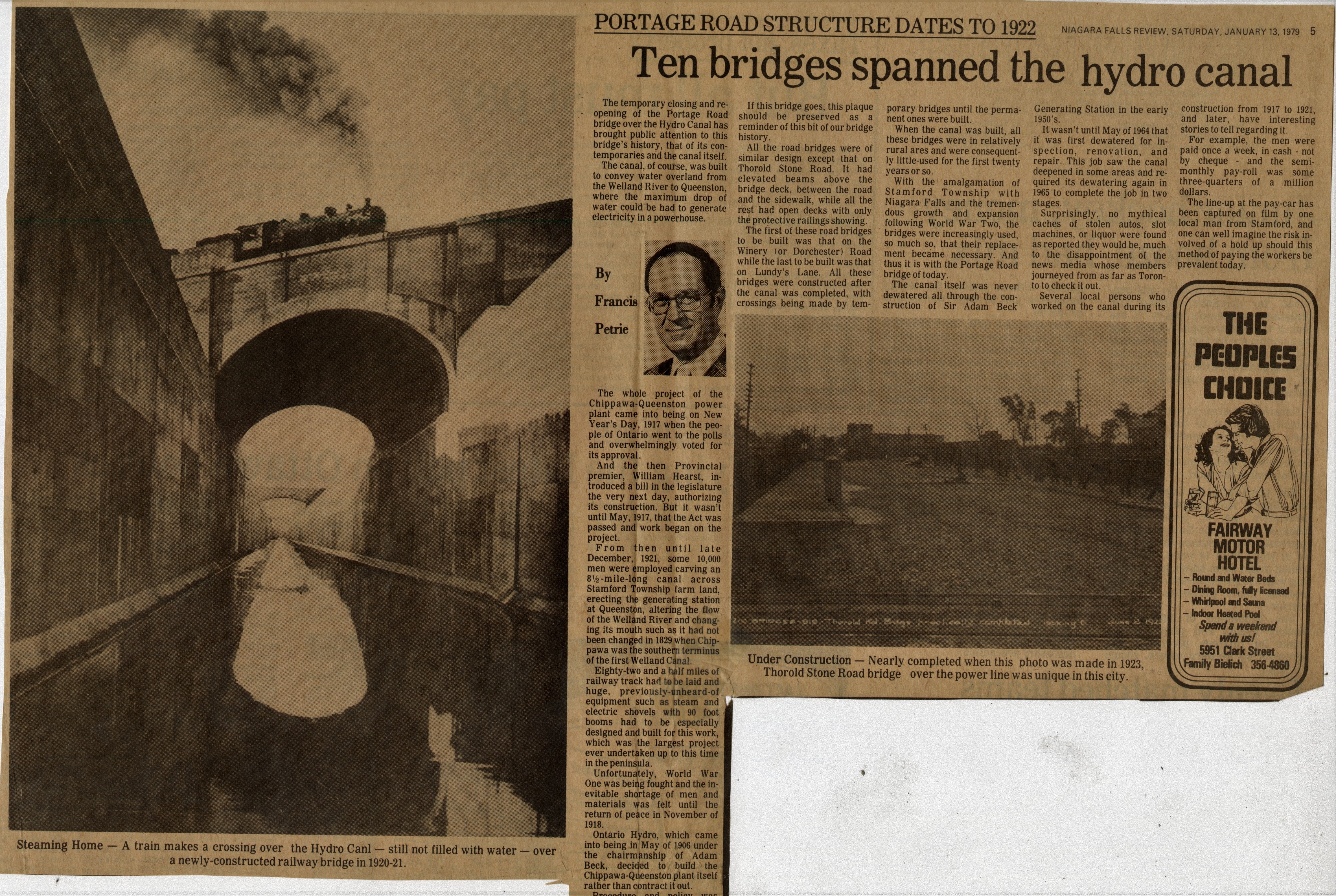- Portage Road Structure Dates to 1922 : Ten bridges spanned the hydro canal