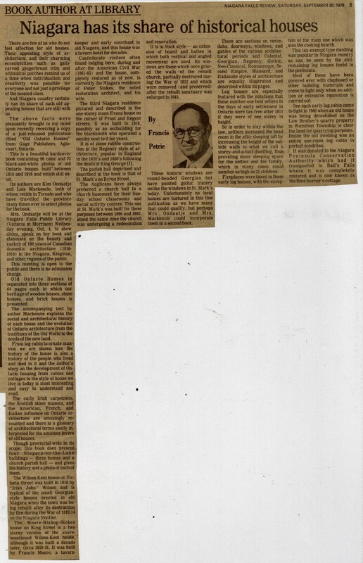 Book Author at Library : Niagara has its share of historical houses