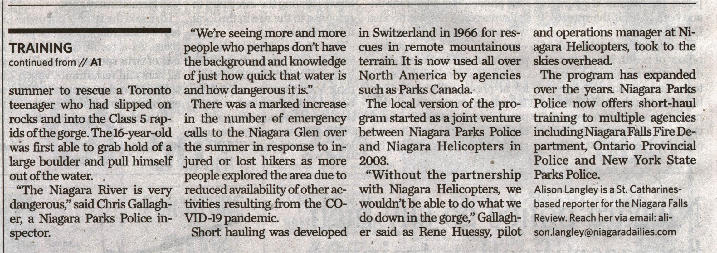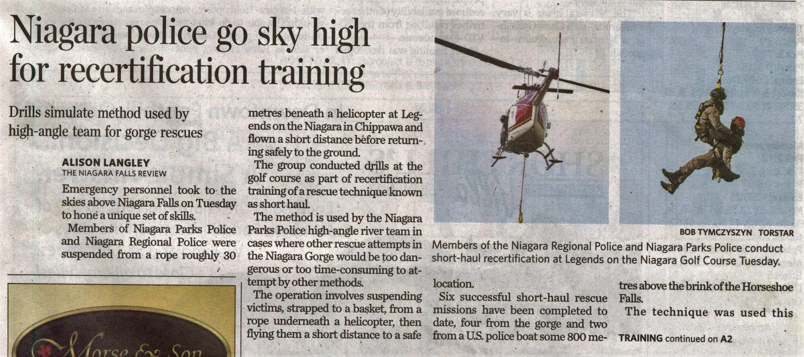 - Niagara police go sky high for recertification training : Drills simulate method used by high-angle team for gorge rescues