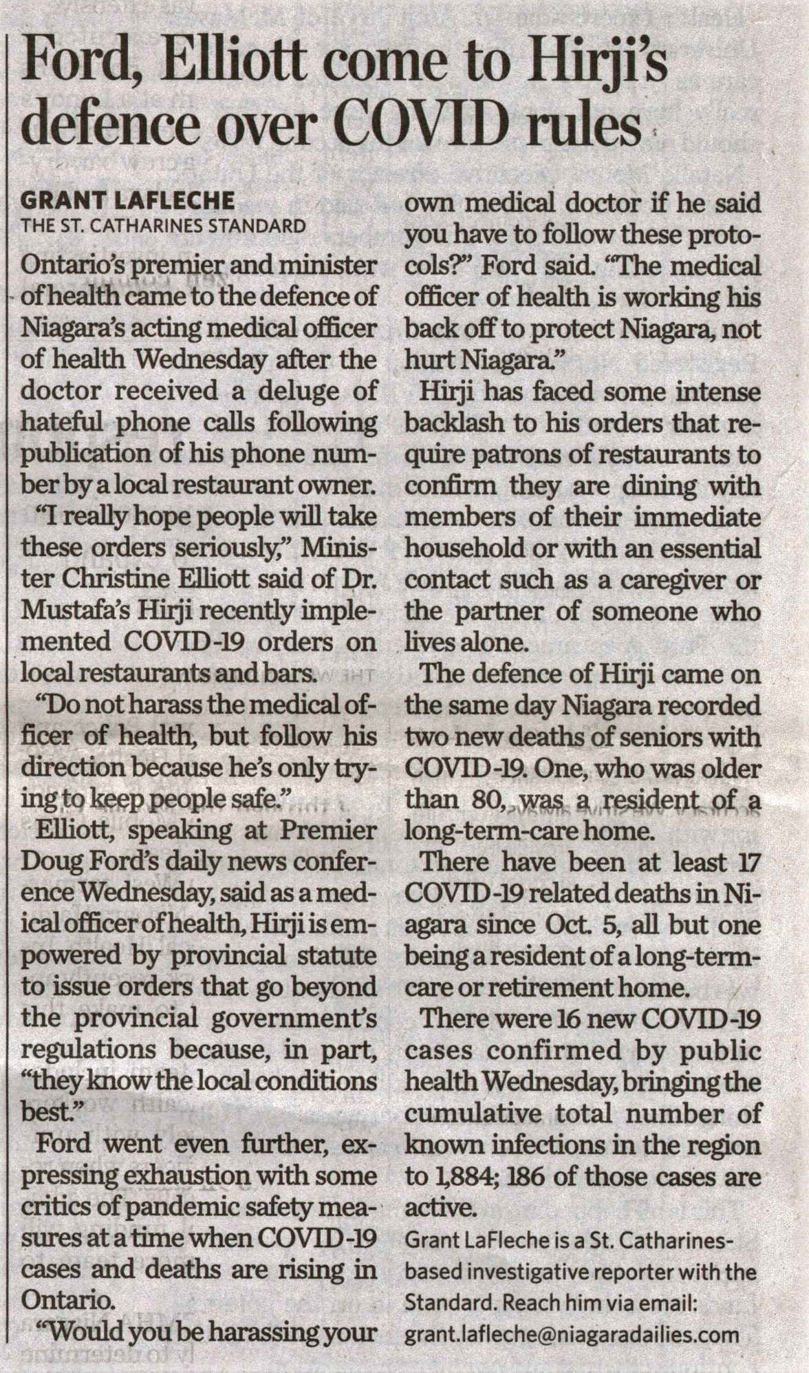 - Hirji, Mustafa Dr. / COVID-19 rules / Elliot, Christine / Ford, Doug / restaurants / bars