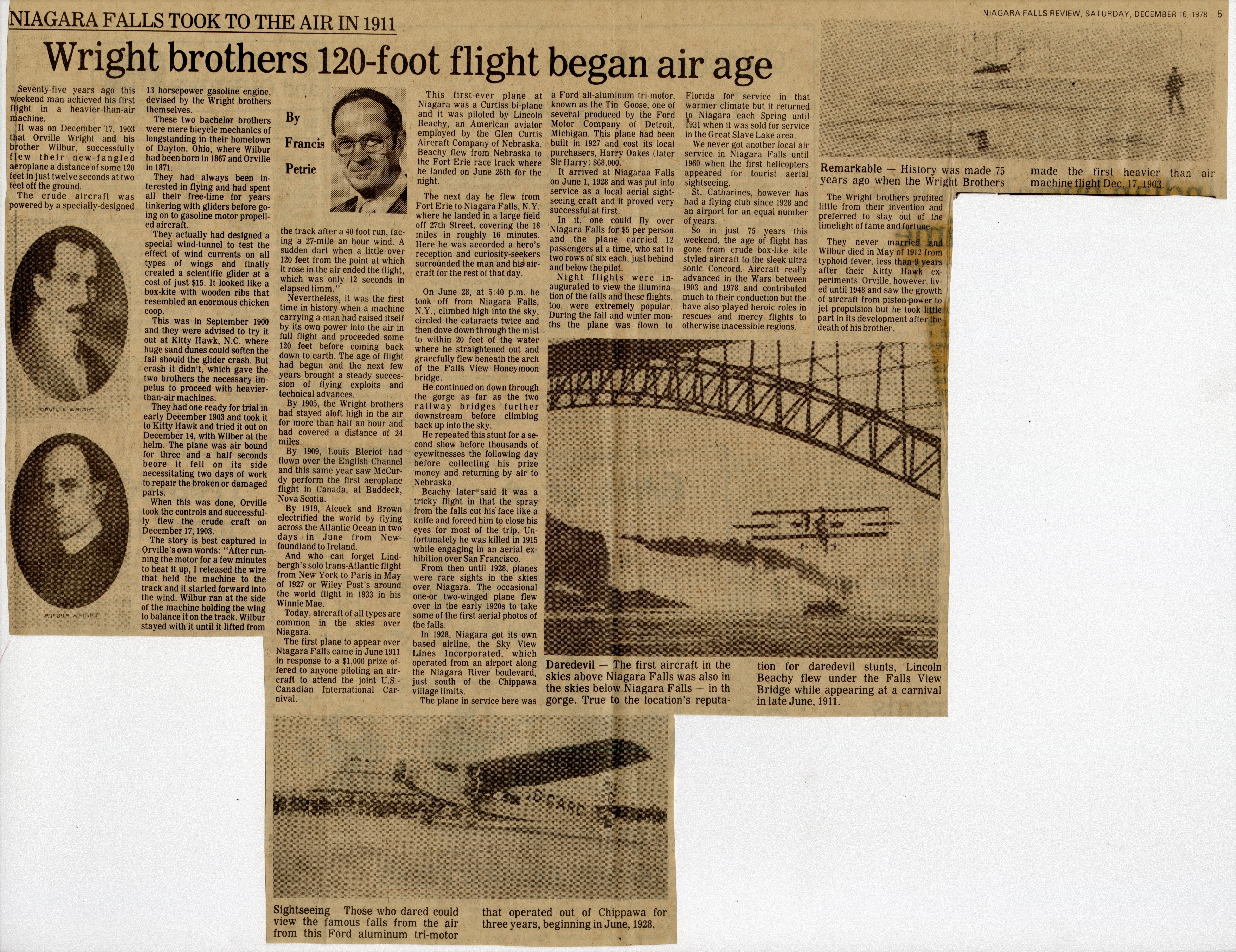 - Niagara Falls Took to the Air in 1911 : Wright brothers 120-foot flight began air age