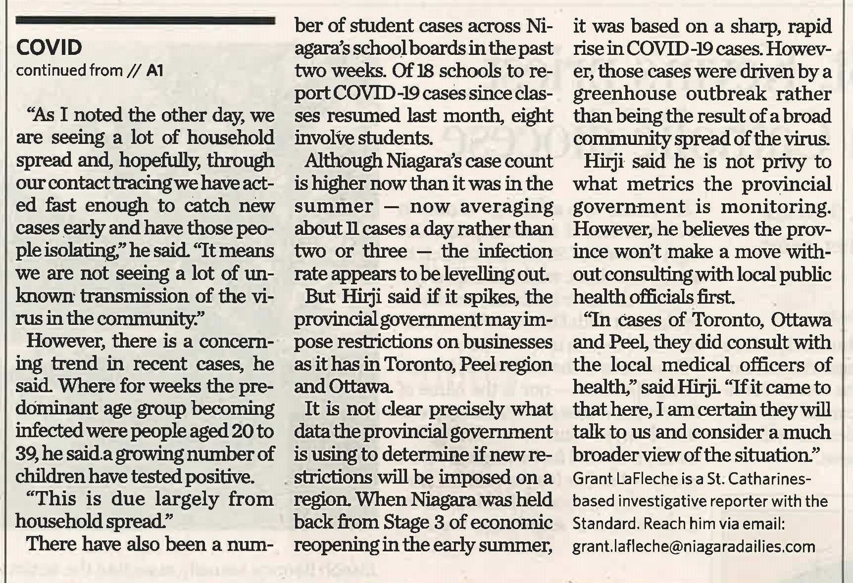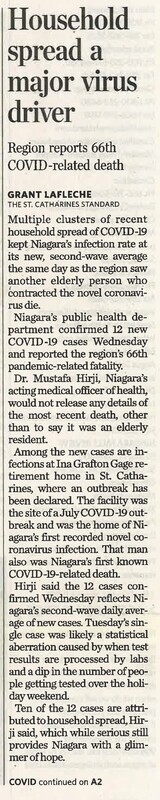 - Household spread a major virus driver : Region reports 66th COVID-related death