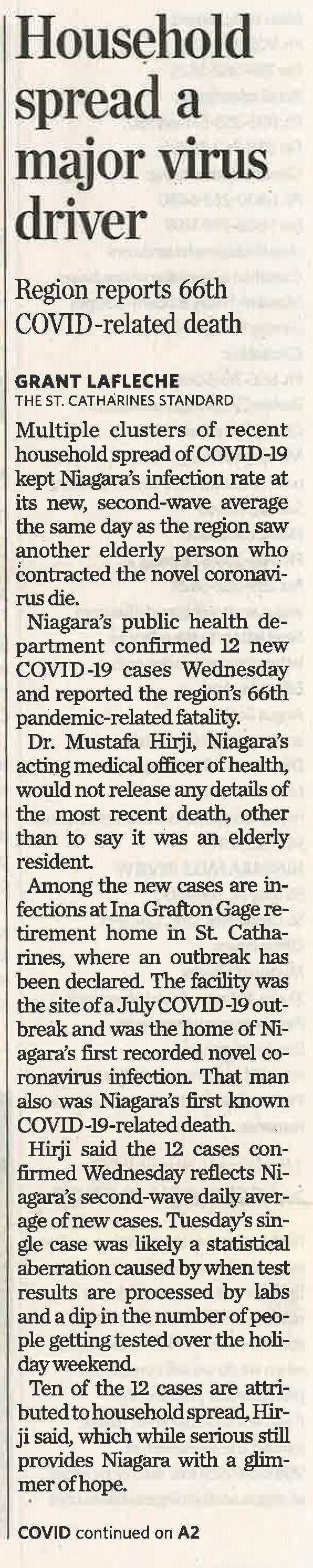 Household spread a major virus driver : Region reports 66th COVID-related death