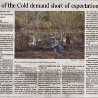 - Out of the Cold demand short of expectations : Homeless shelters had expected to hit maximum 'pretty darn fast'