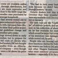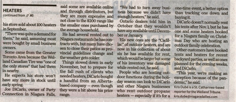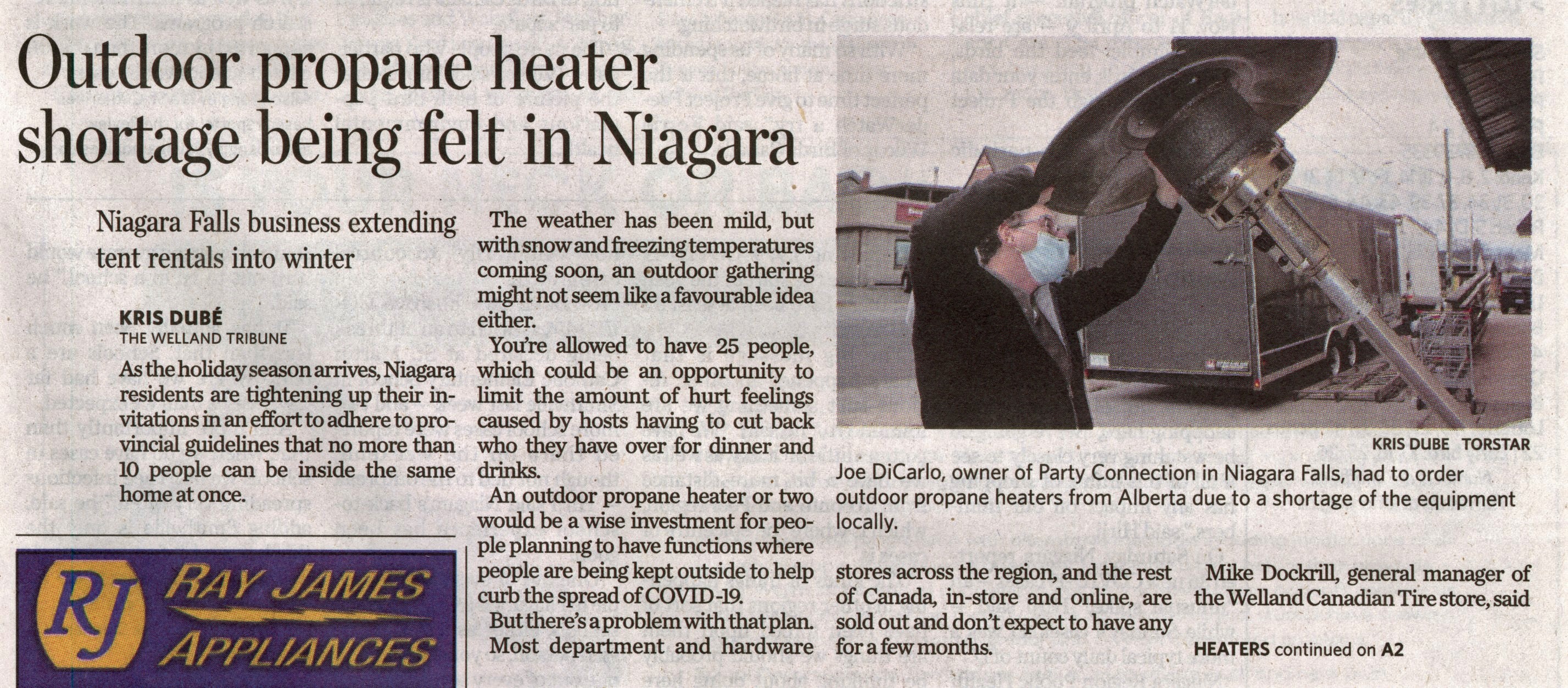 - Outdoor propane heater shortage being felt in Niagara : Niagara Falls business extending tent rentals into winter