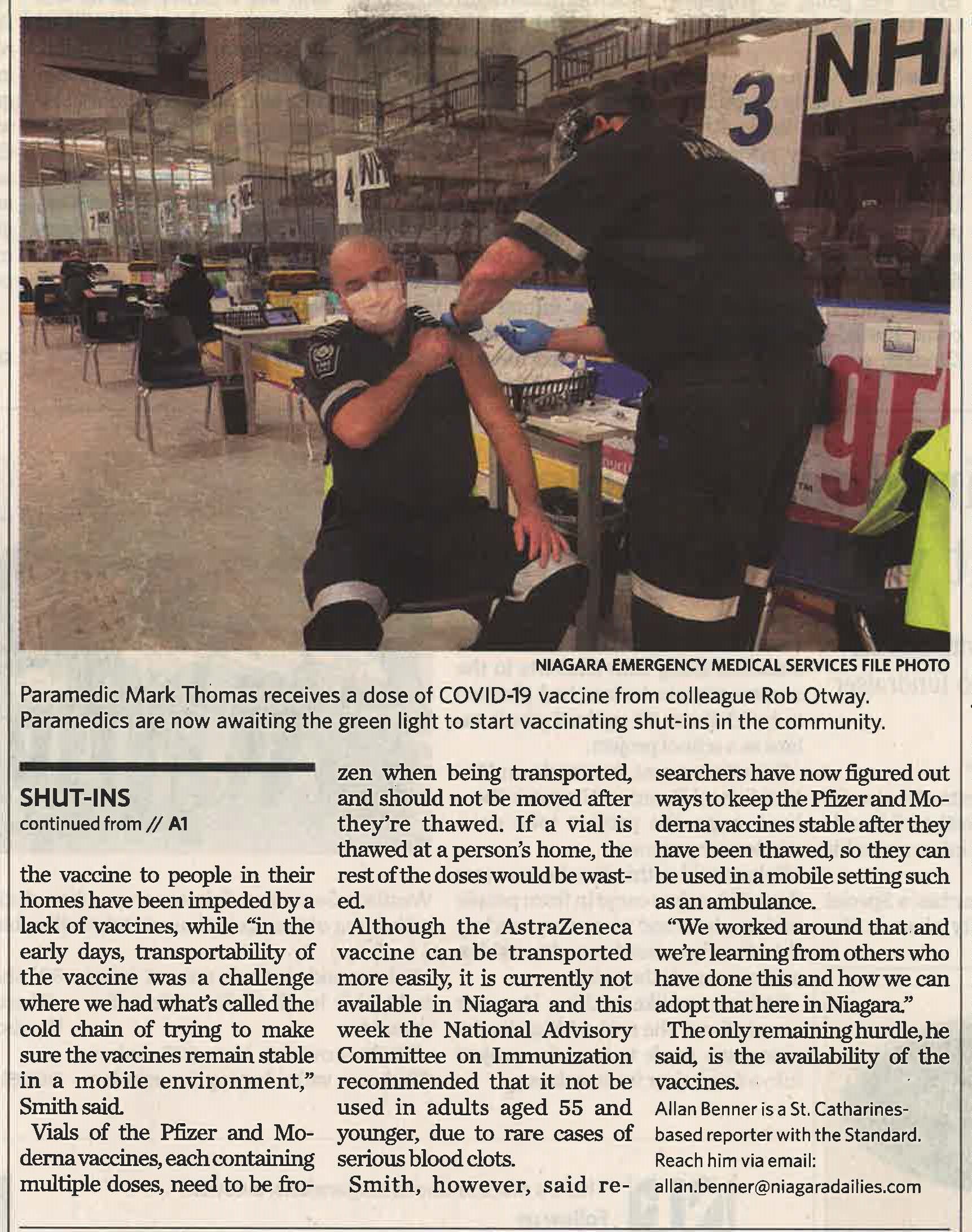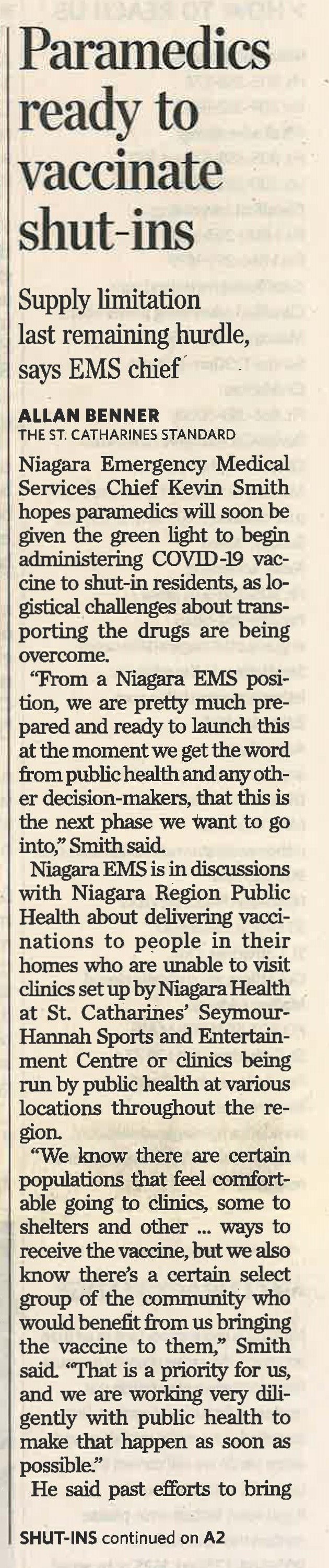 - Paramedics ready to vaccinate shut-ins : Supply limitation last remaining hurdle, says EMS chief