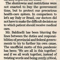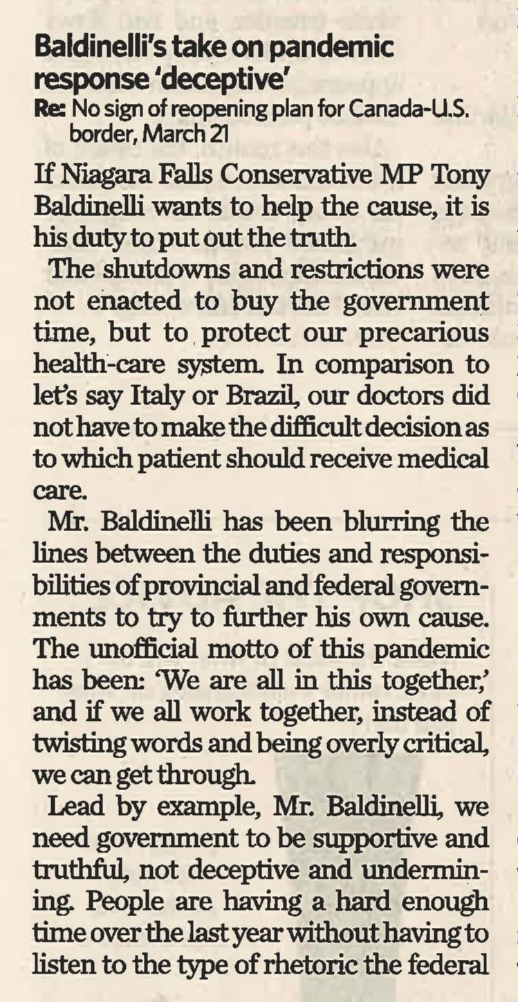 - Baldinelli, Tony / COVID-19 pandemic / truthfulness / governments