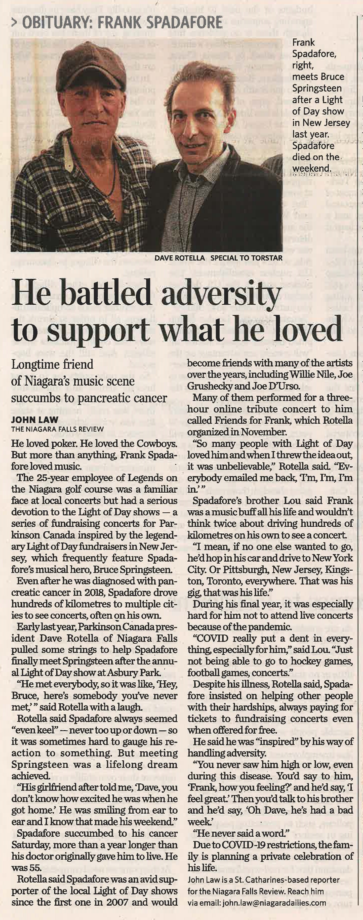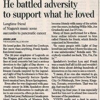 He battled adversity to support what he loved : Longtime friend of Niagara's music scene succumbs to pancreatic cancer