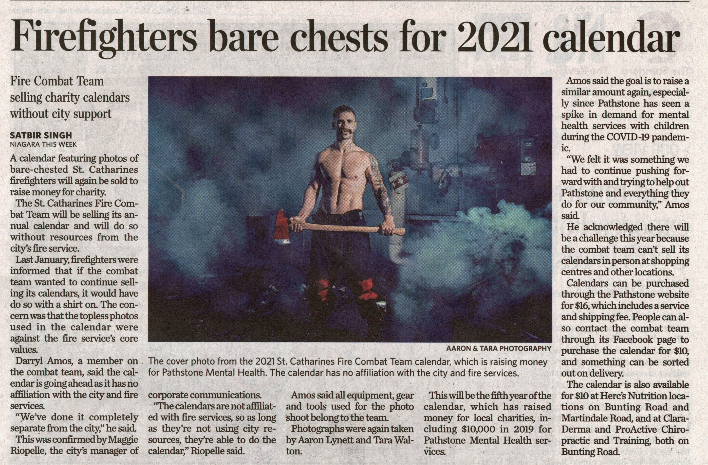Firefighters bare chests for 2021 calender : Fire Combat Team selling charity calenders without city support