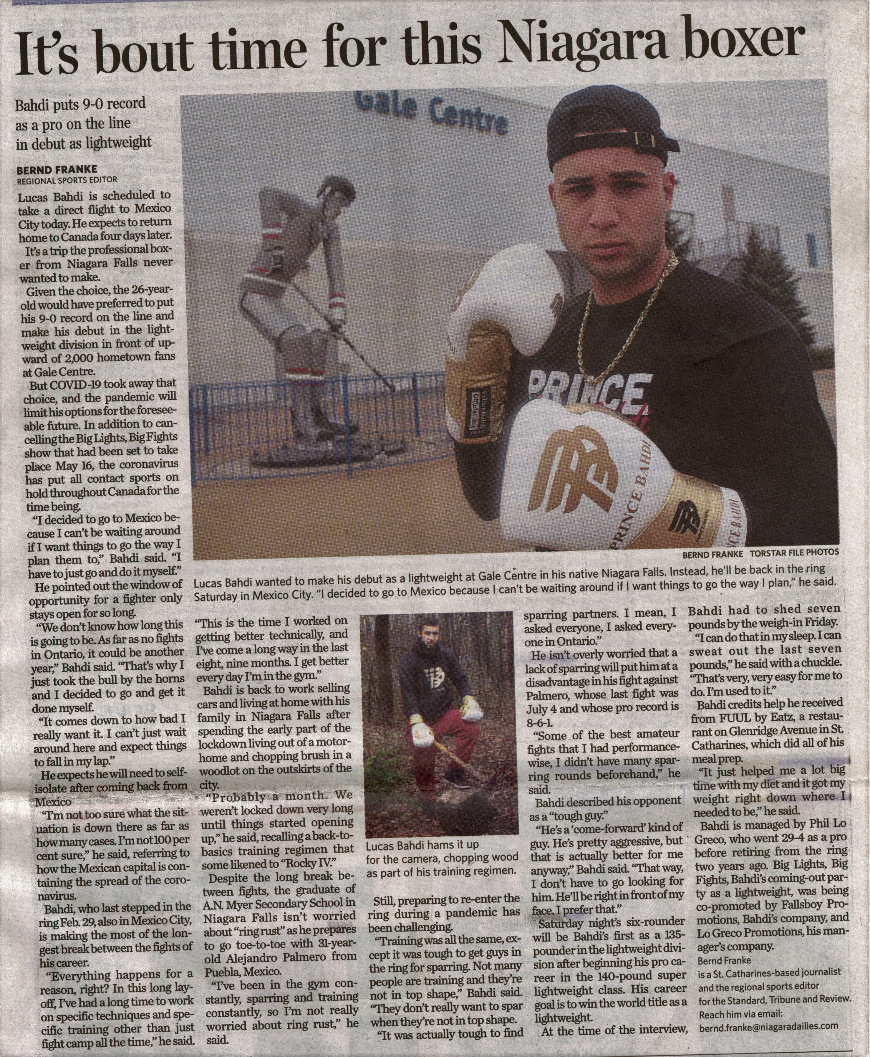 - It's bout time for this Niagara boxer : Bahdi puts 9-0 record as a pro on the line in debut as lightweight