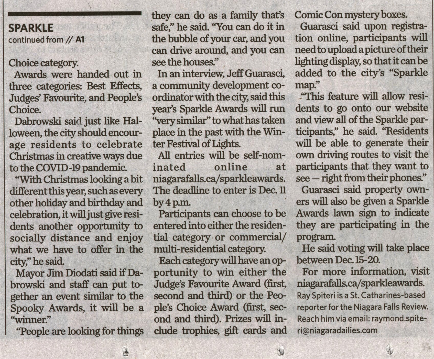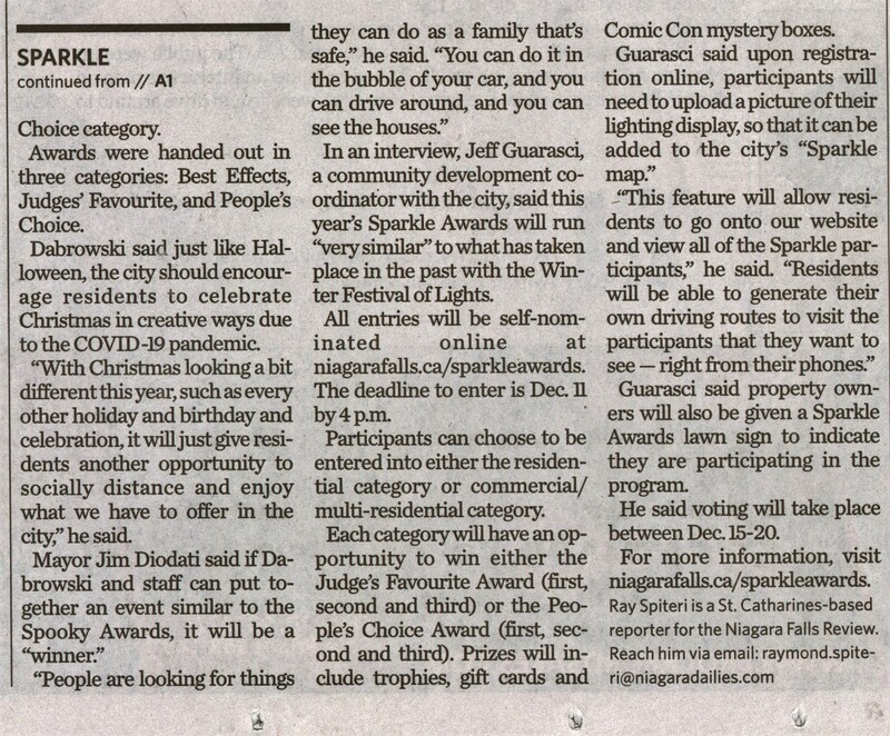 - Niagara Falls takes the lead on holiday Sparkle Awards : Annual decorating contest recognizes the best light displays in the city