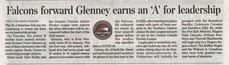 - Glenney, Trent / Caruso, Brady / St. Catharines Falcons / COVID-19