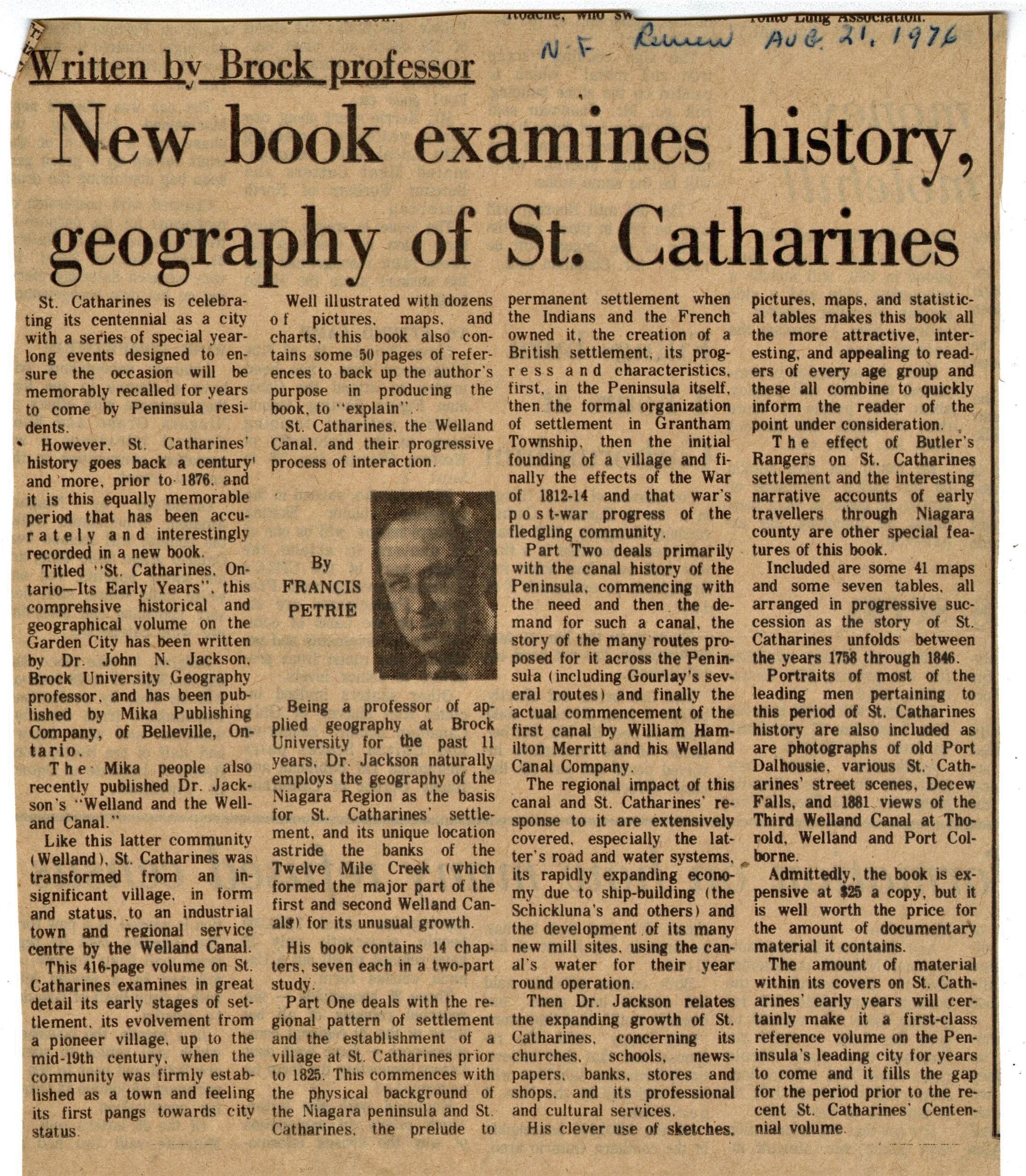 - Written by Brock professor : New book examines history, geography of St. Catharines