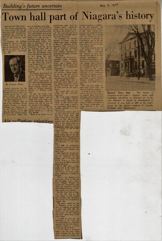 - Building's future uncertain : Town hall part of Niagara's history