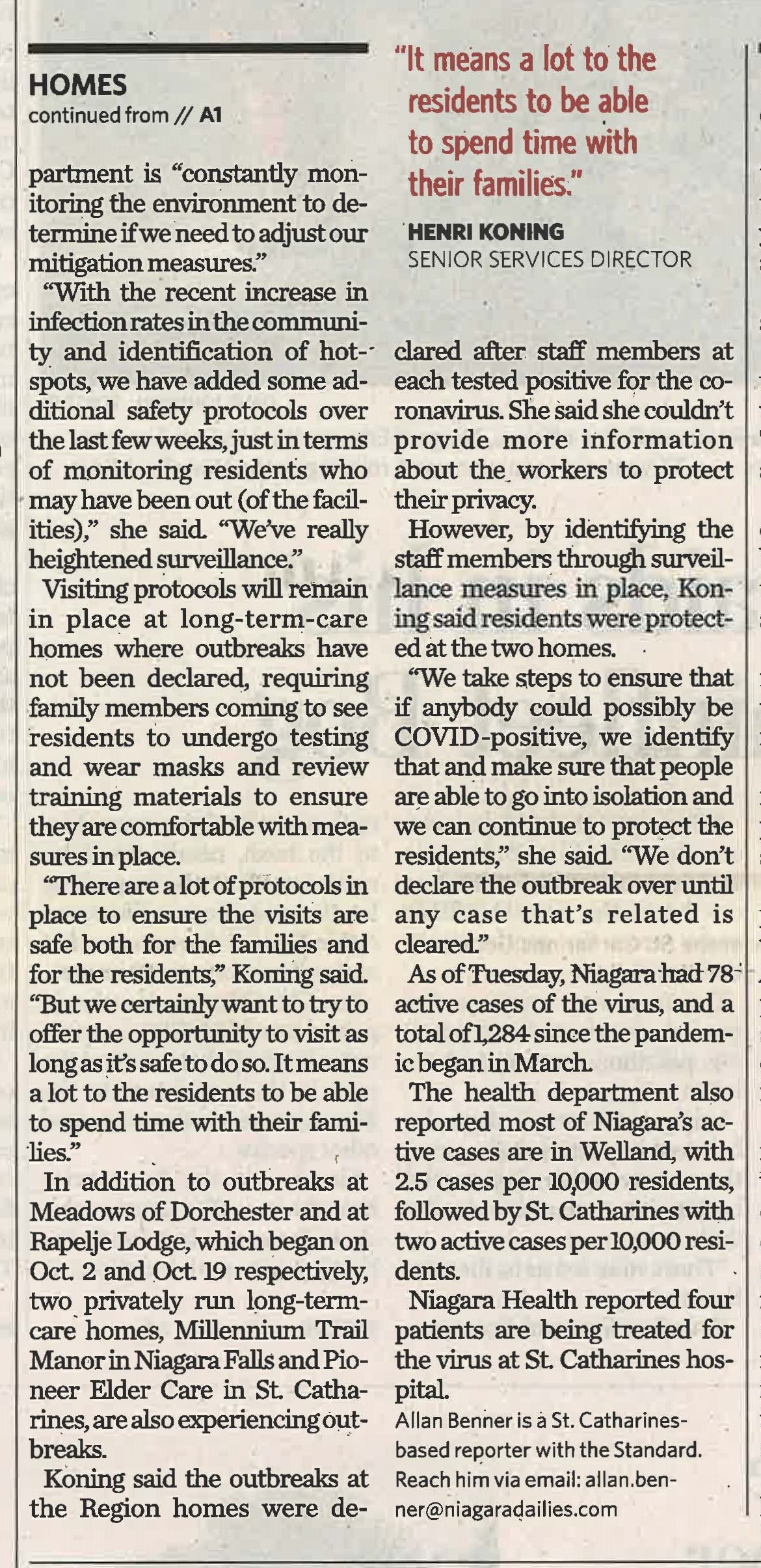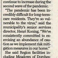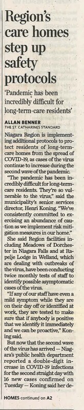 - Region's care homes step up safety protocols : pandemic has been incredibly difficult for long-term-care residents