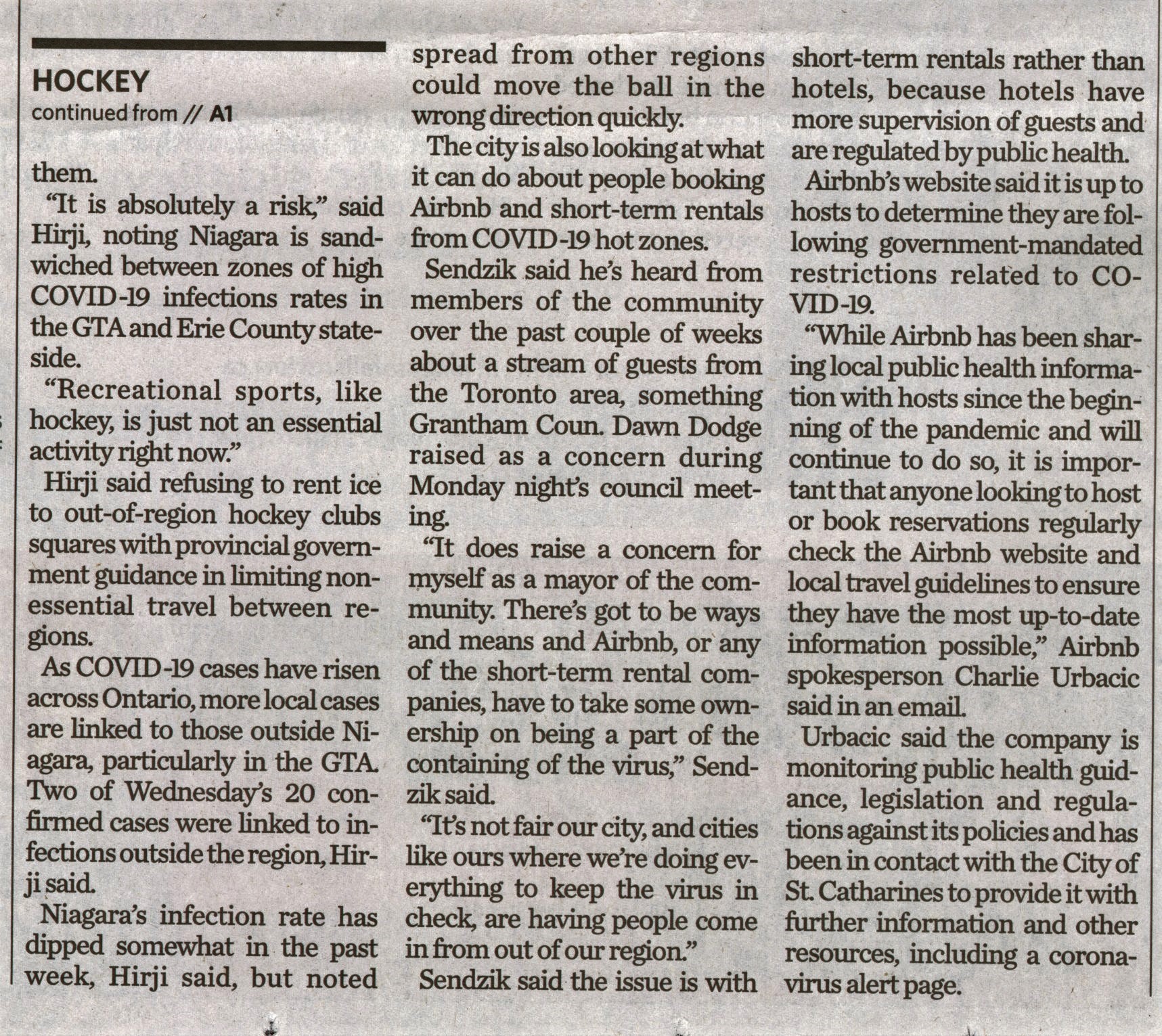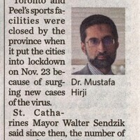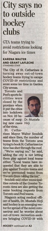 - Hirji, Mustafa Dr. / COVID-19 restrictions / GTA hockey clubs