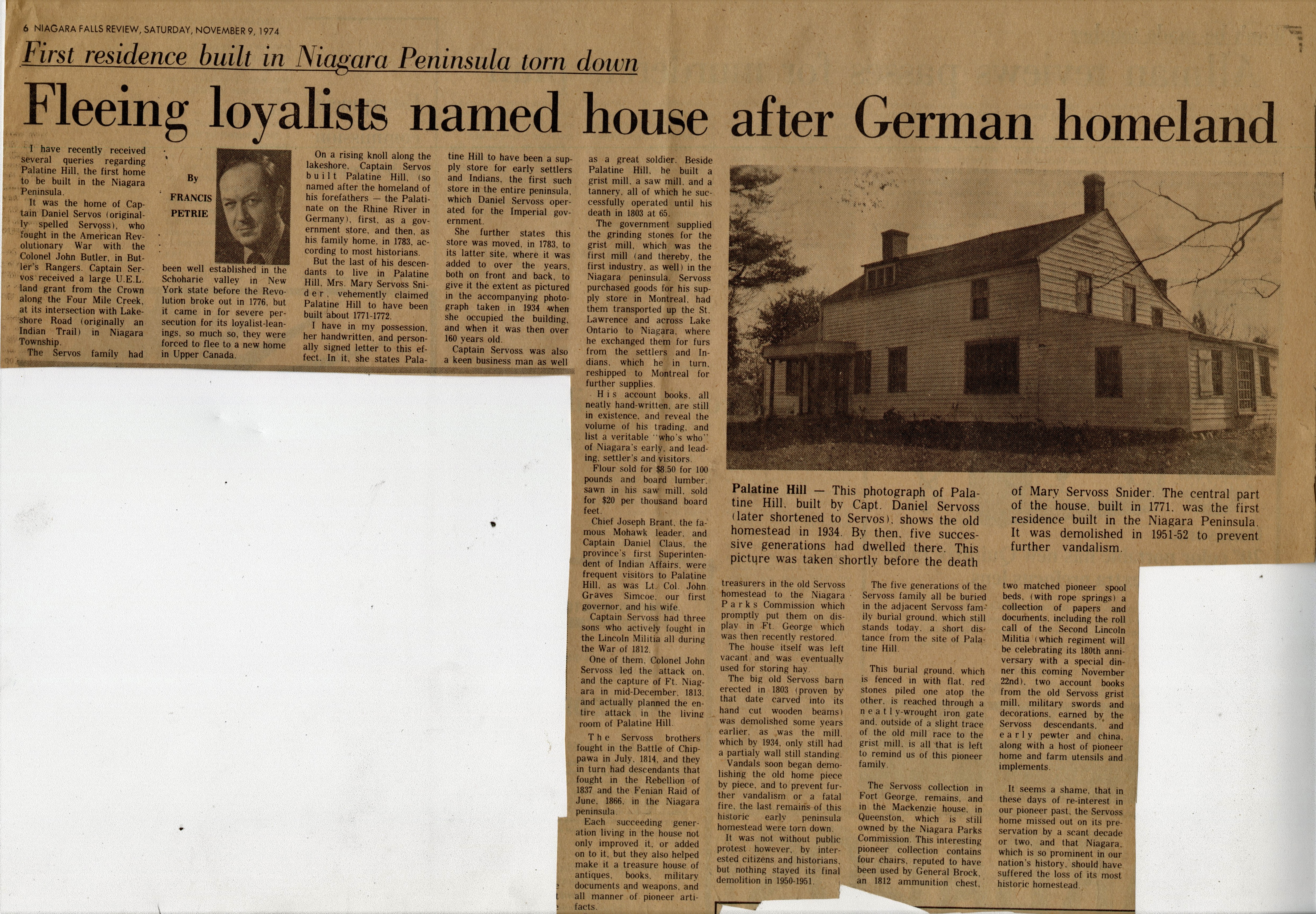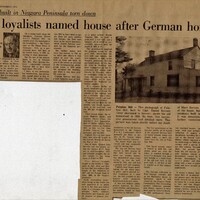 - First residence built in Niagara Peninsula torn down: Fleeing loyalists named house after German homeland