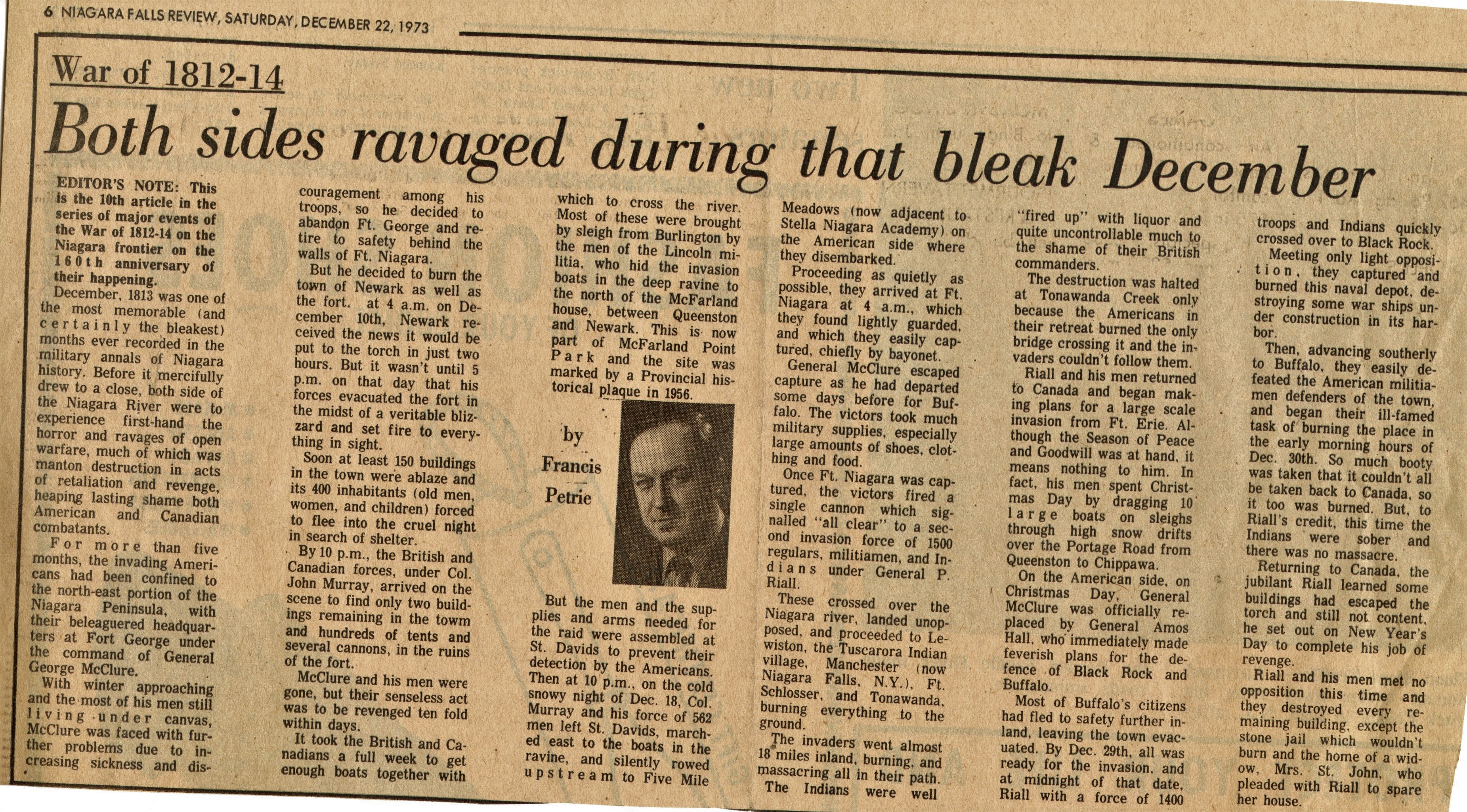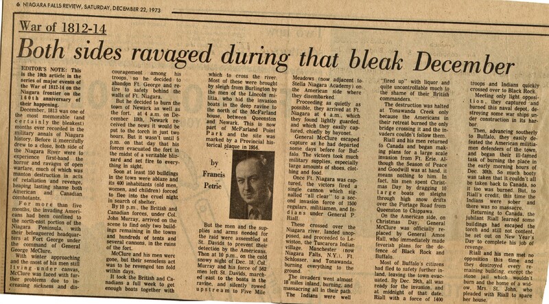 War of 1812-14 : Both sides ravaged during that bleak December