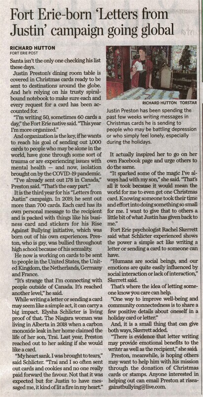 - Fort Erie-born 'Letters from Justin' campaign going global