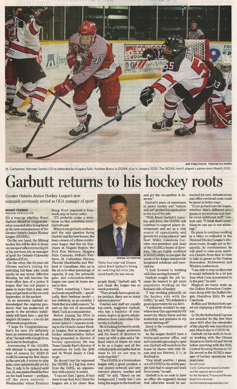 - Garbutt returns to his hockey roots : Greater Ontario Junior Hockey League's new commish previously served as OUA manager of sport