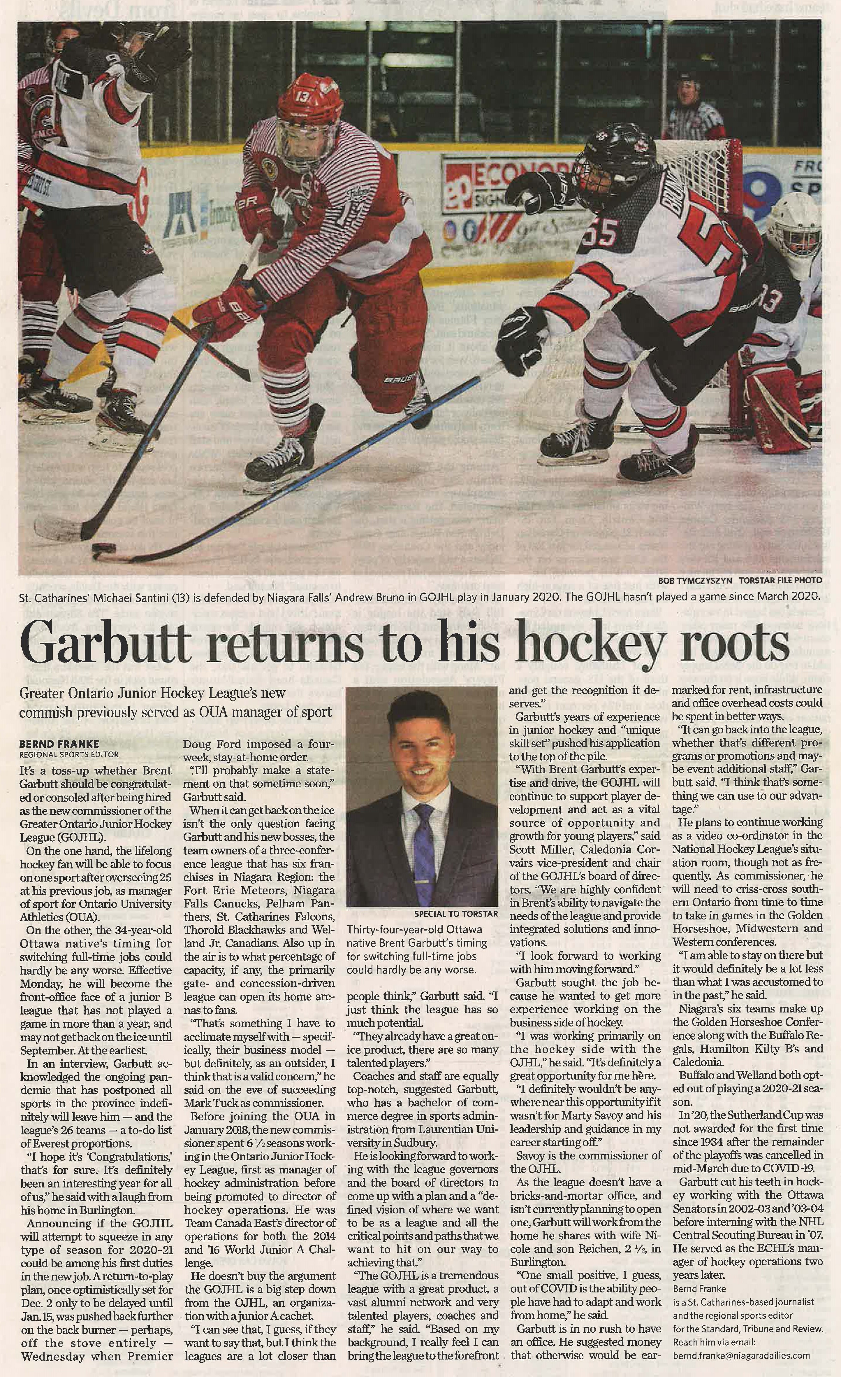 - Garbutt, Brent / Greater Ontario Junior Hockey League / Niagara Falls Canucks / COVID-19 pandemic /