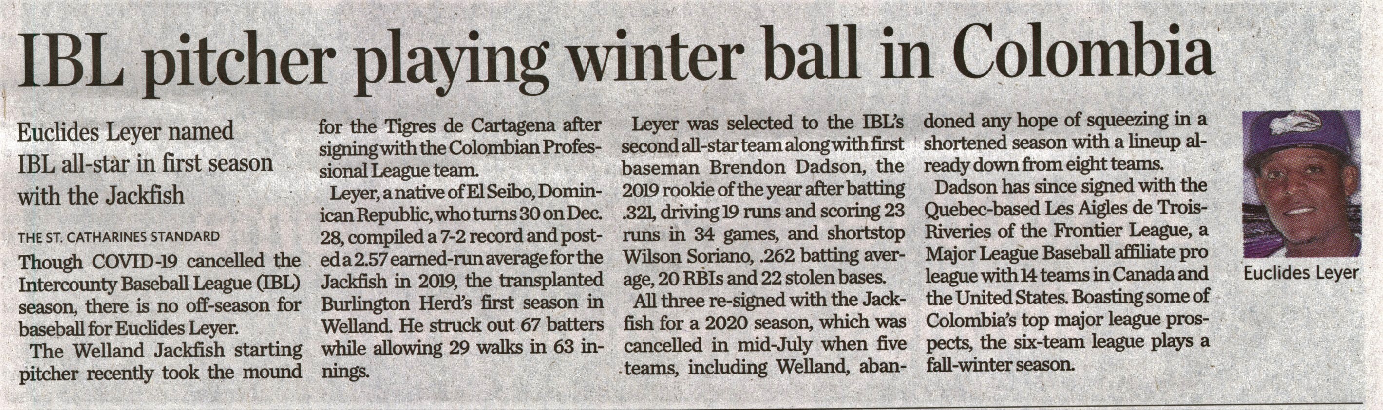 - Leyer, Euclides / Intercounty Baseball League / Welland JackFish / COVID-19 pandemic